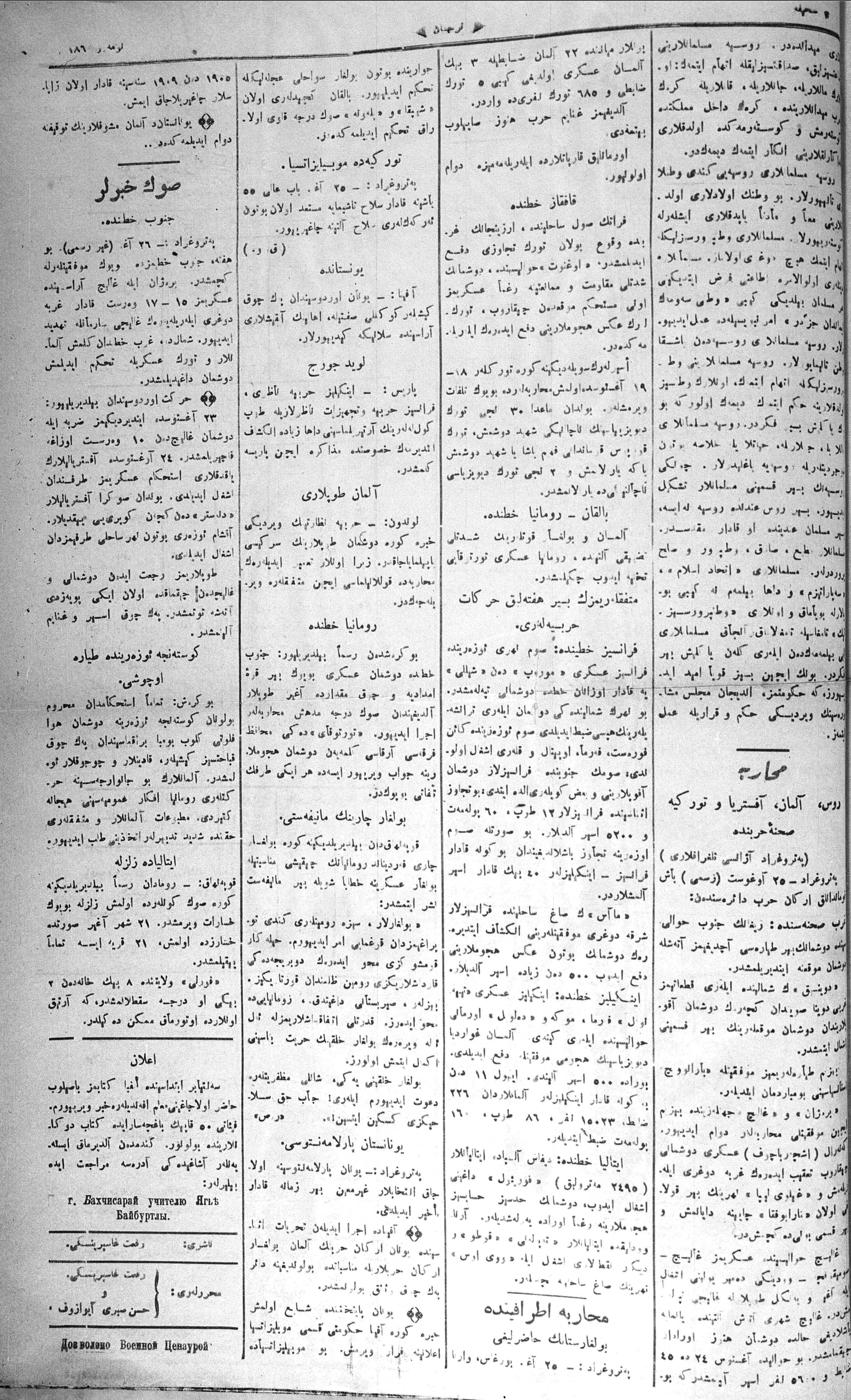 Turkish-Russian newspaper published in Crimea by İsmail Gaspıralı.
