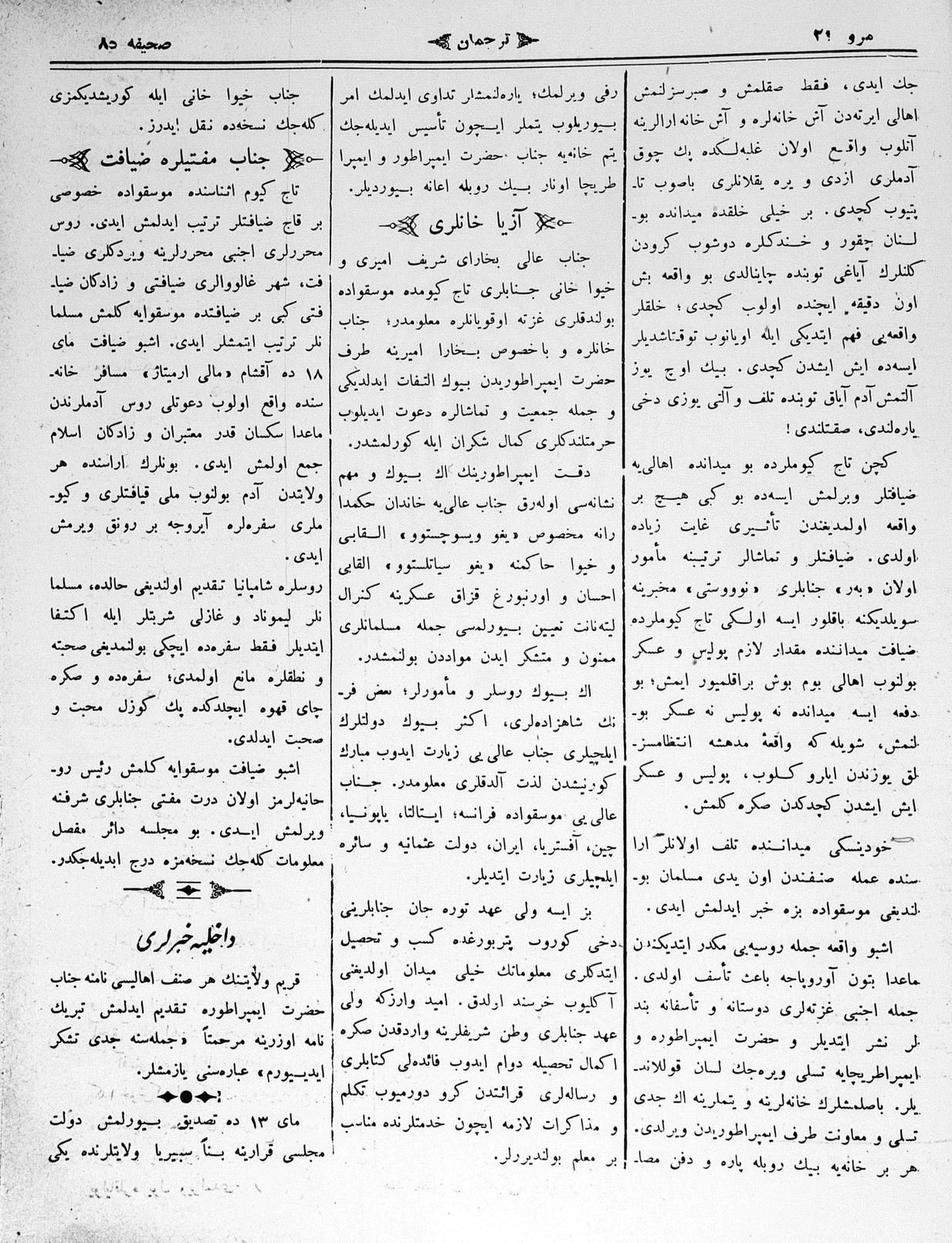 The name of the newspaper changed to Tercüman-ı Ahval-i Zaman in 1905. In 1909, it started to be published under its first name, Tercüman.