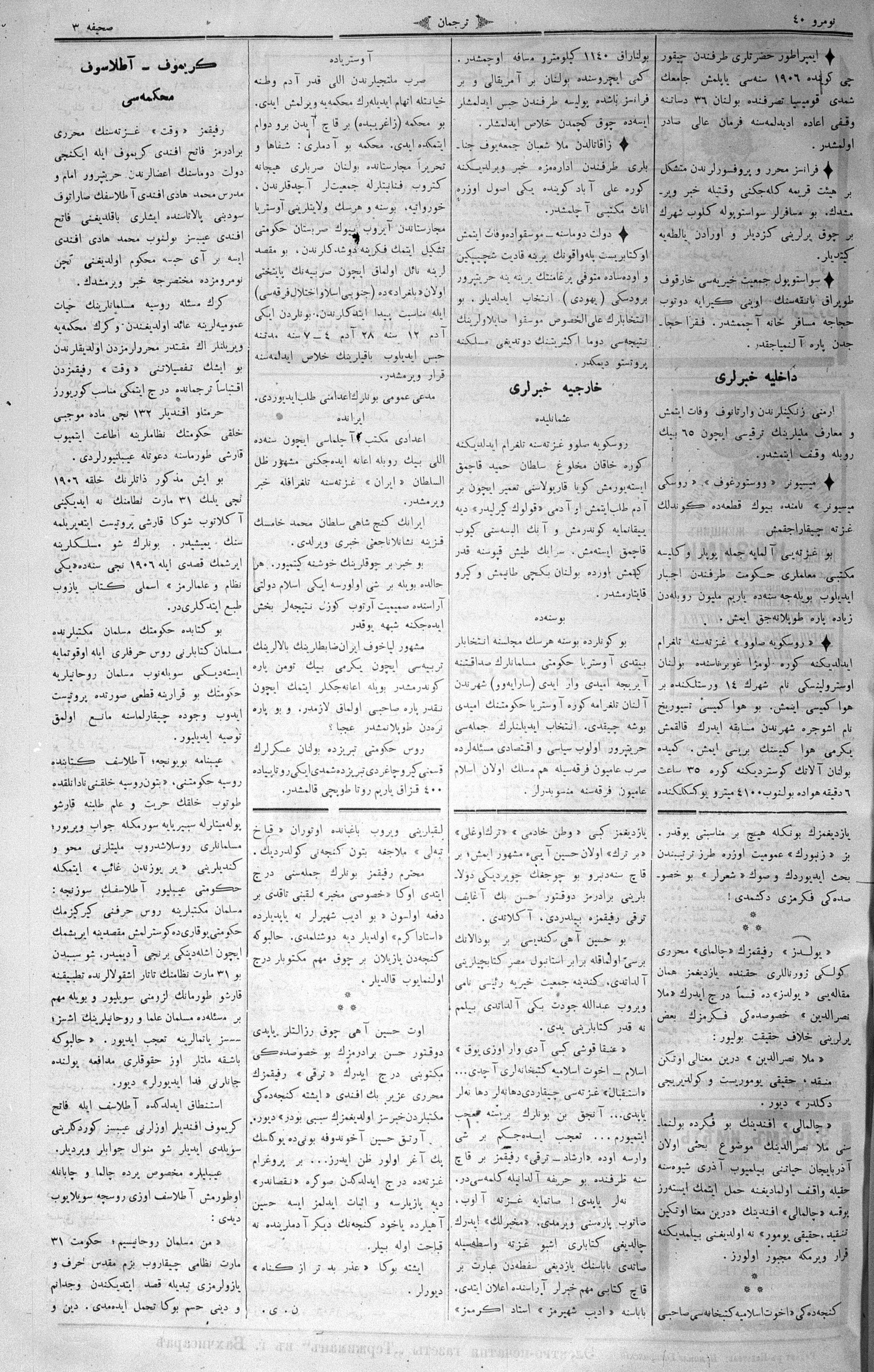 Turkish-Russian newspaper published in Crimea by İsmail Gaspıralı.