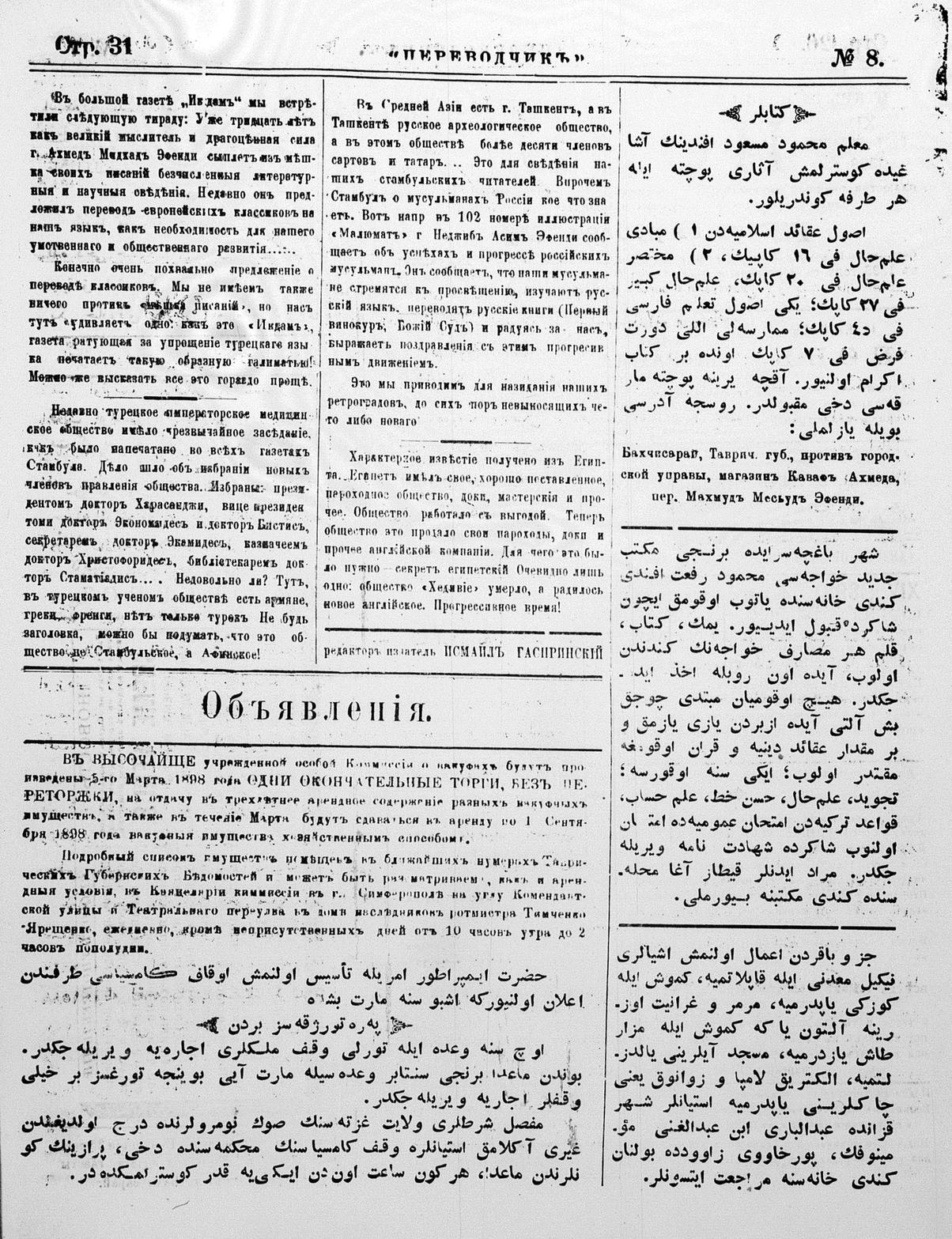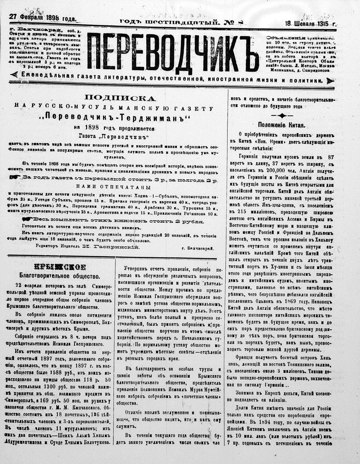 Turkish-Russian newspaper published in Crimea by İsmail Gaspıralı.