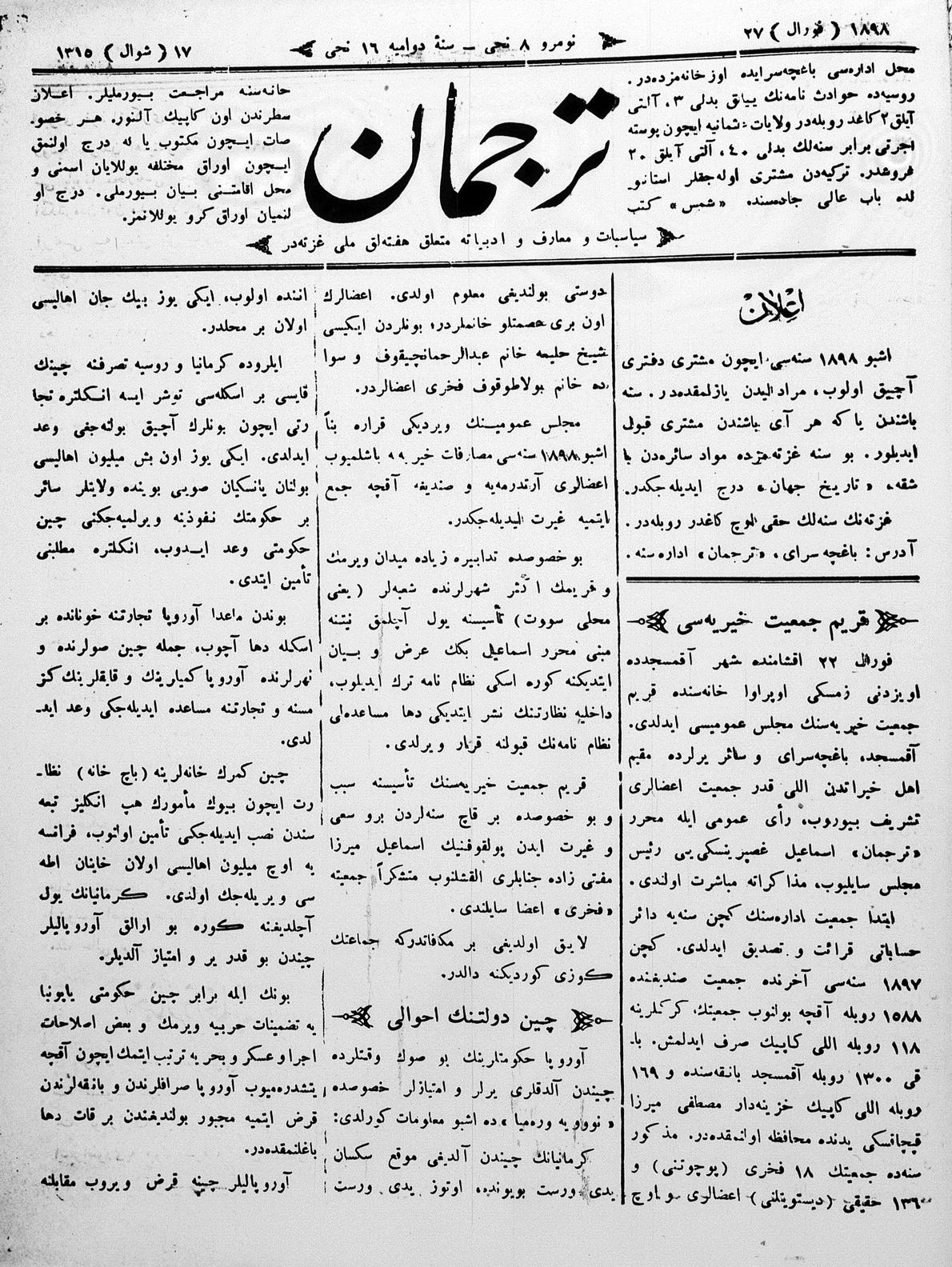 Tercüman, 27 February 1898 Year 16 No 8