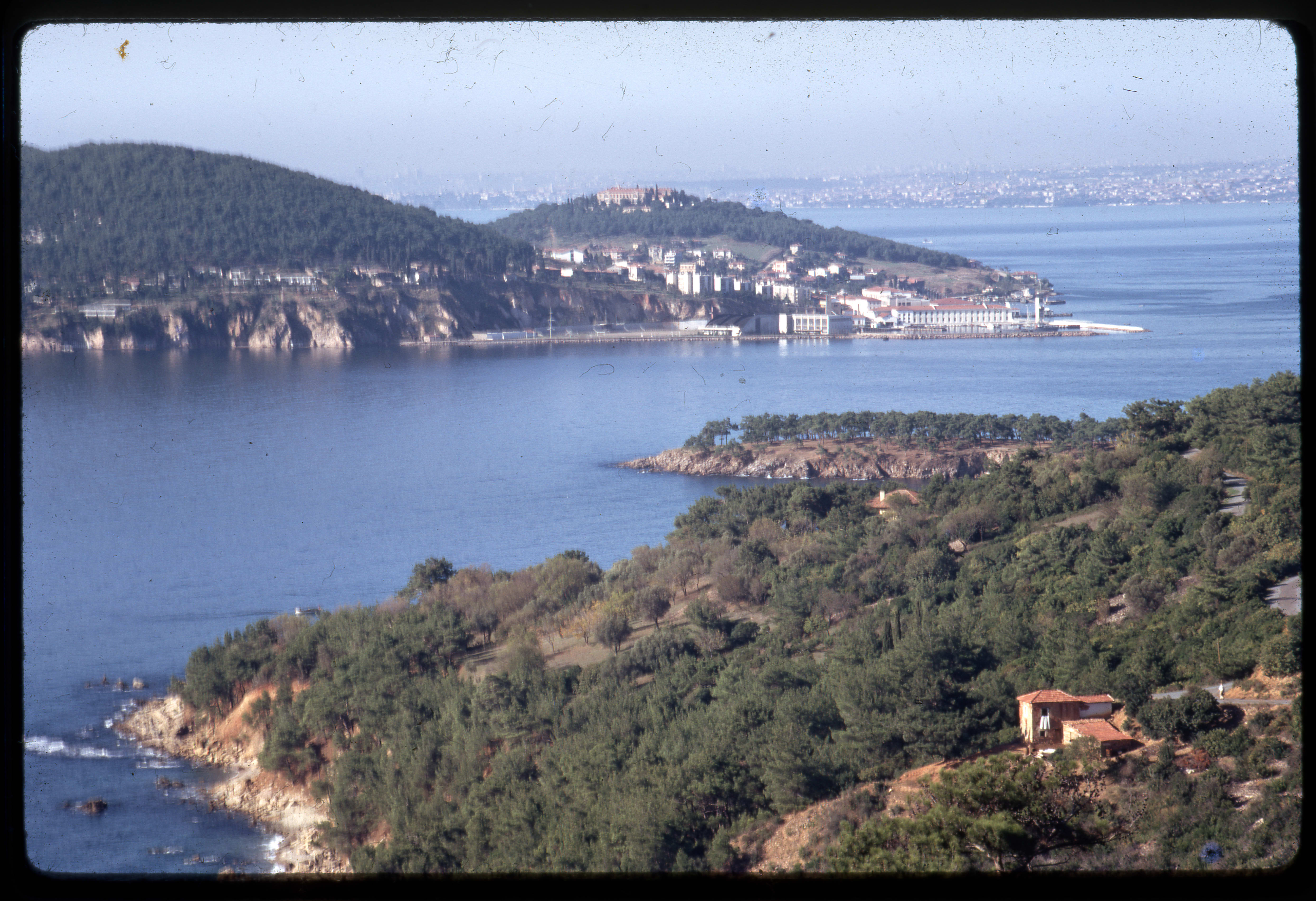 İstanbul-Büyükada Aya Yorgi Kilisesi'ne çıkarken Heybeliada'nın görünüşü