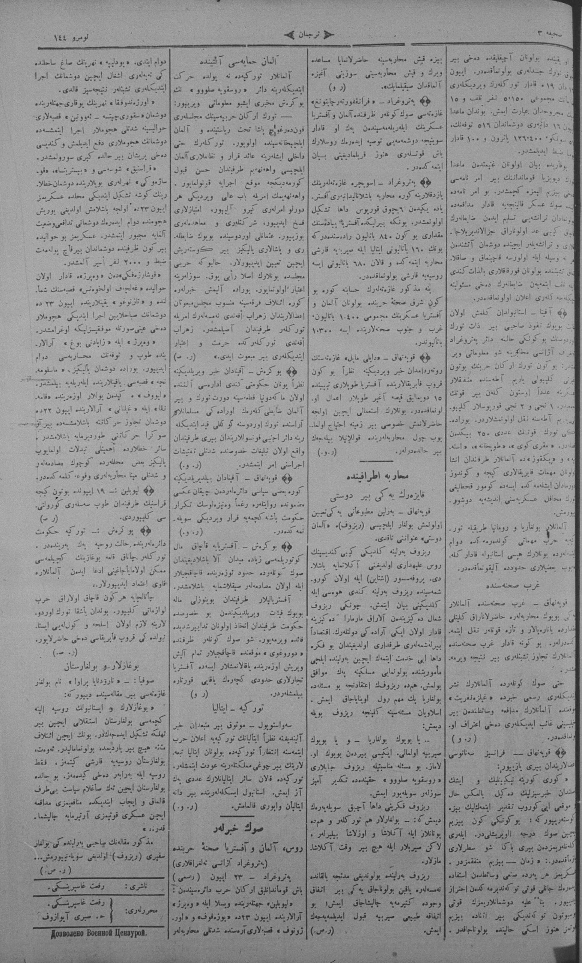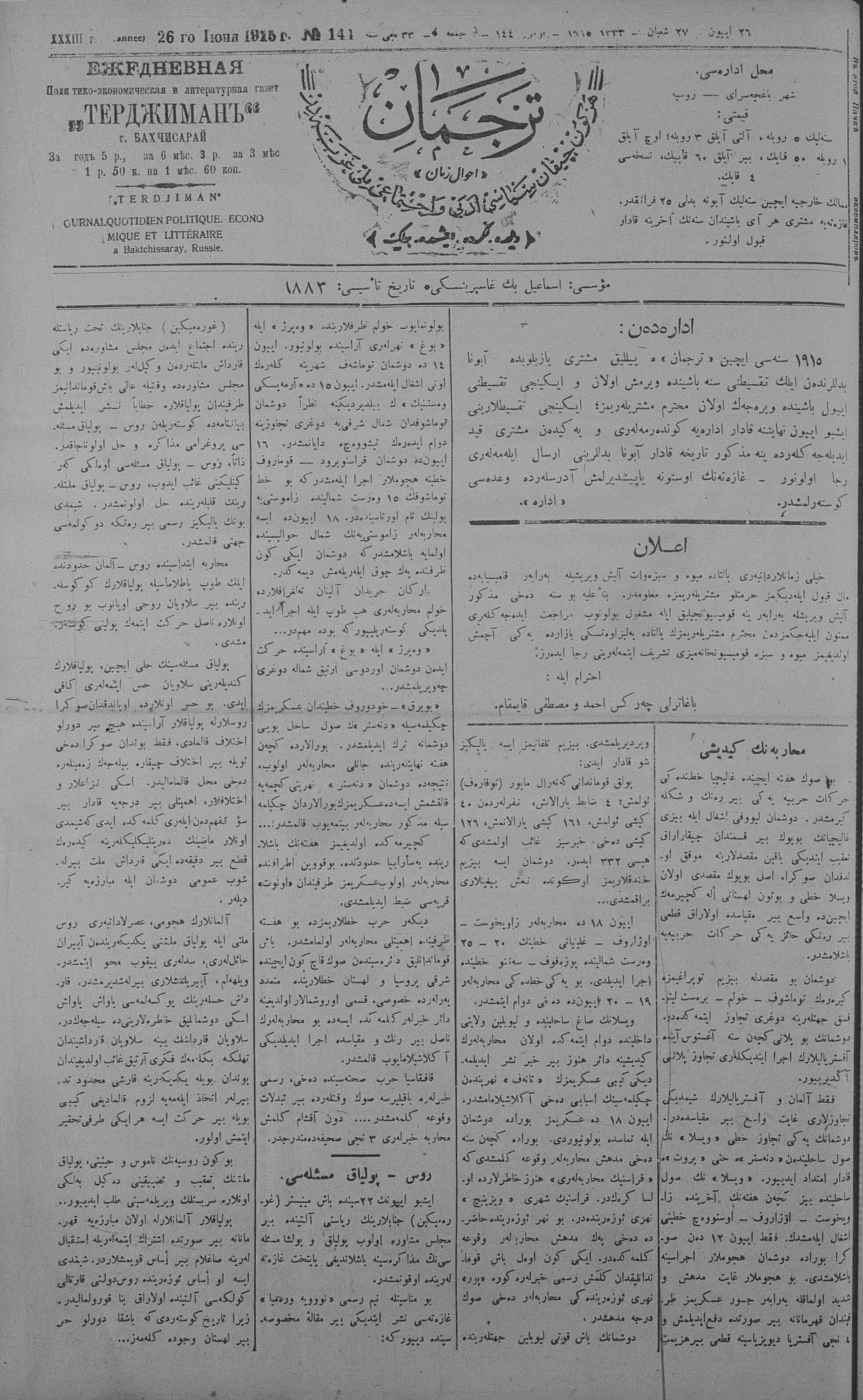Tercüman, 26 June 1915 Year 33 No 144