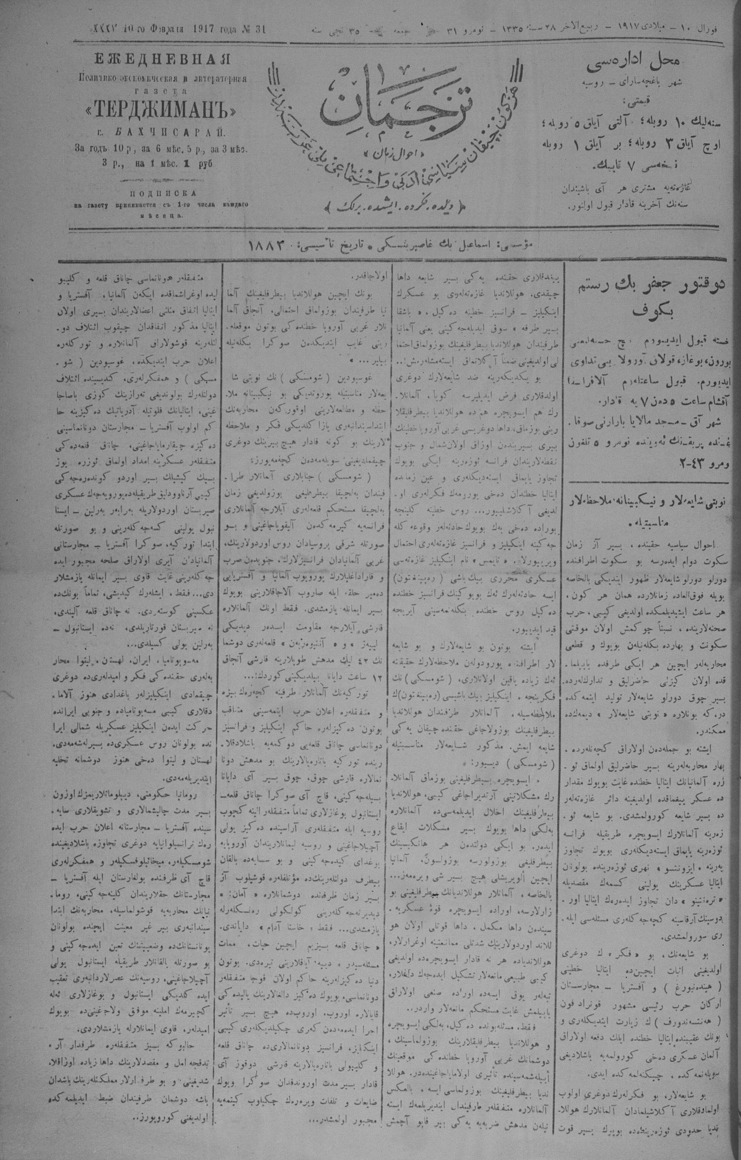 Turkish-Russian newspaper published in Crimea by İsmail Gaspıralı.
