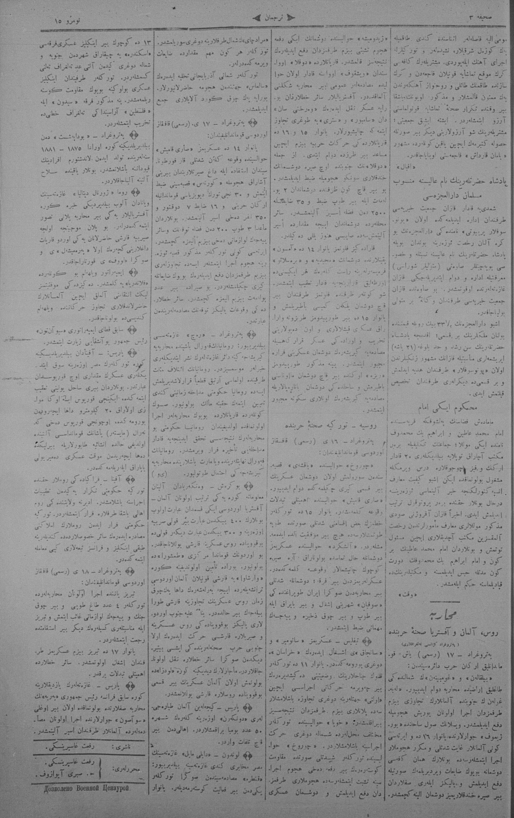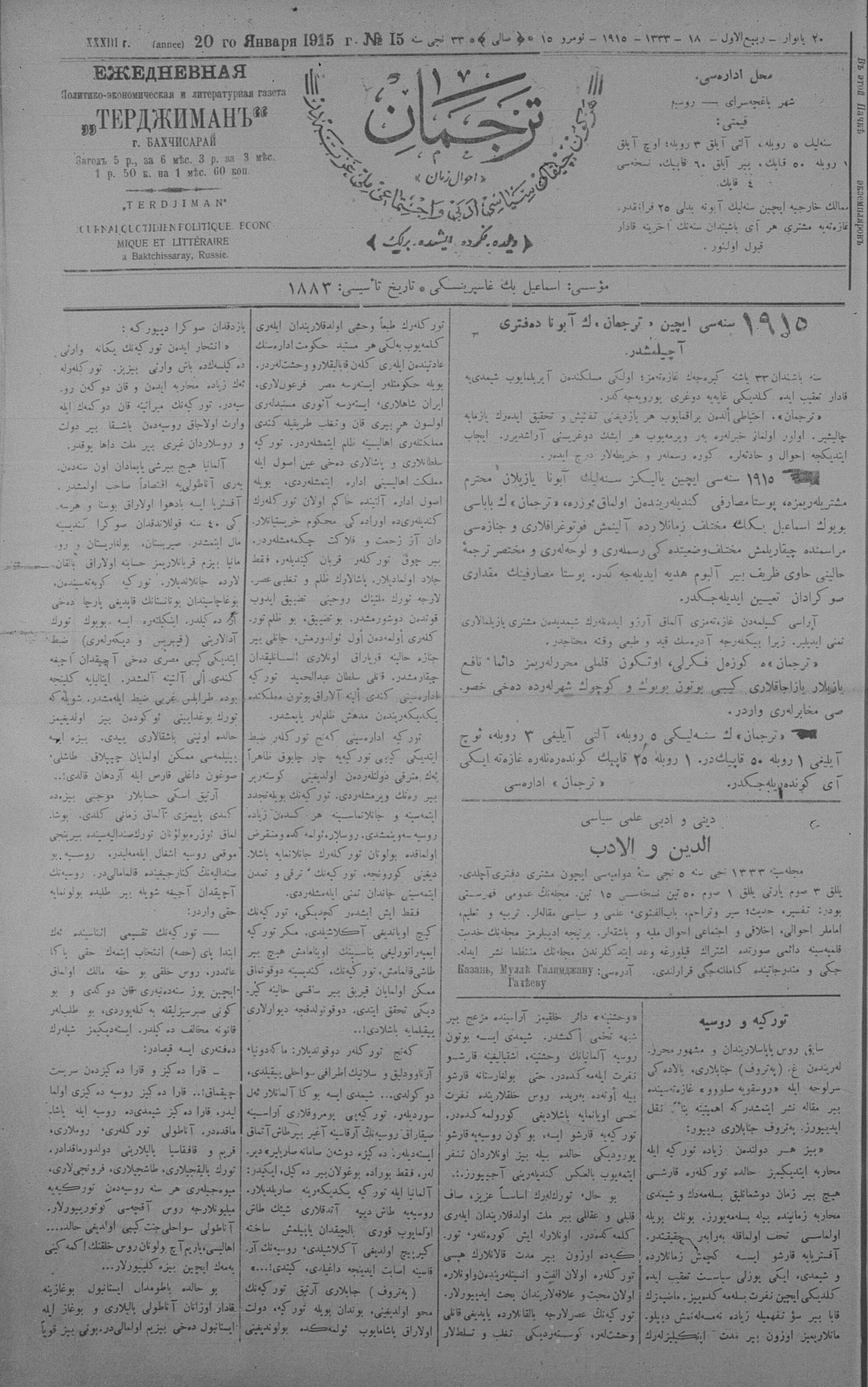 Tercüman, 20 January 1915 Year 33 No 15