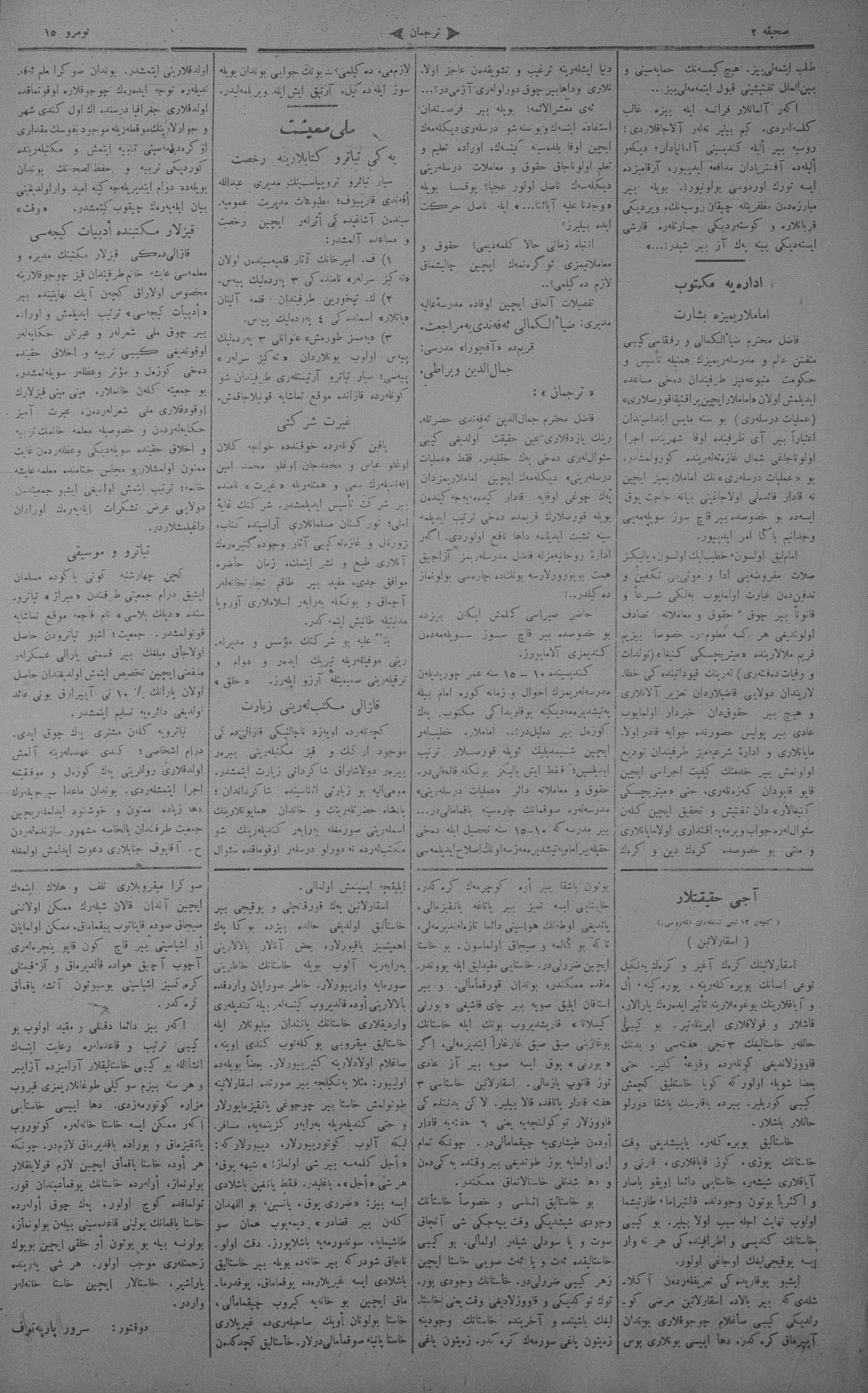 Turkish-Russian newspaper published in Crimea by İsmail Gaspıralı.