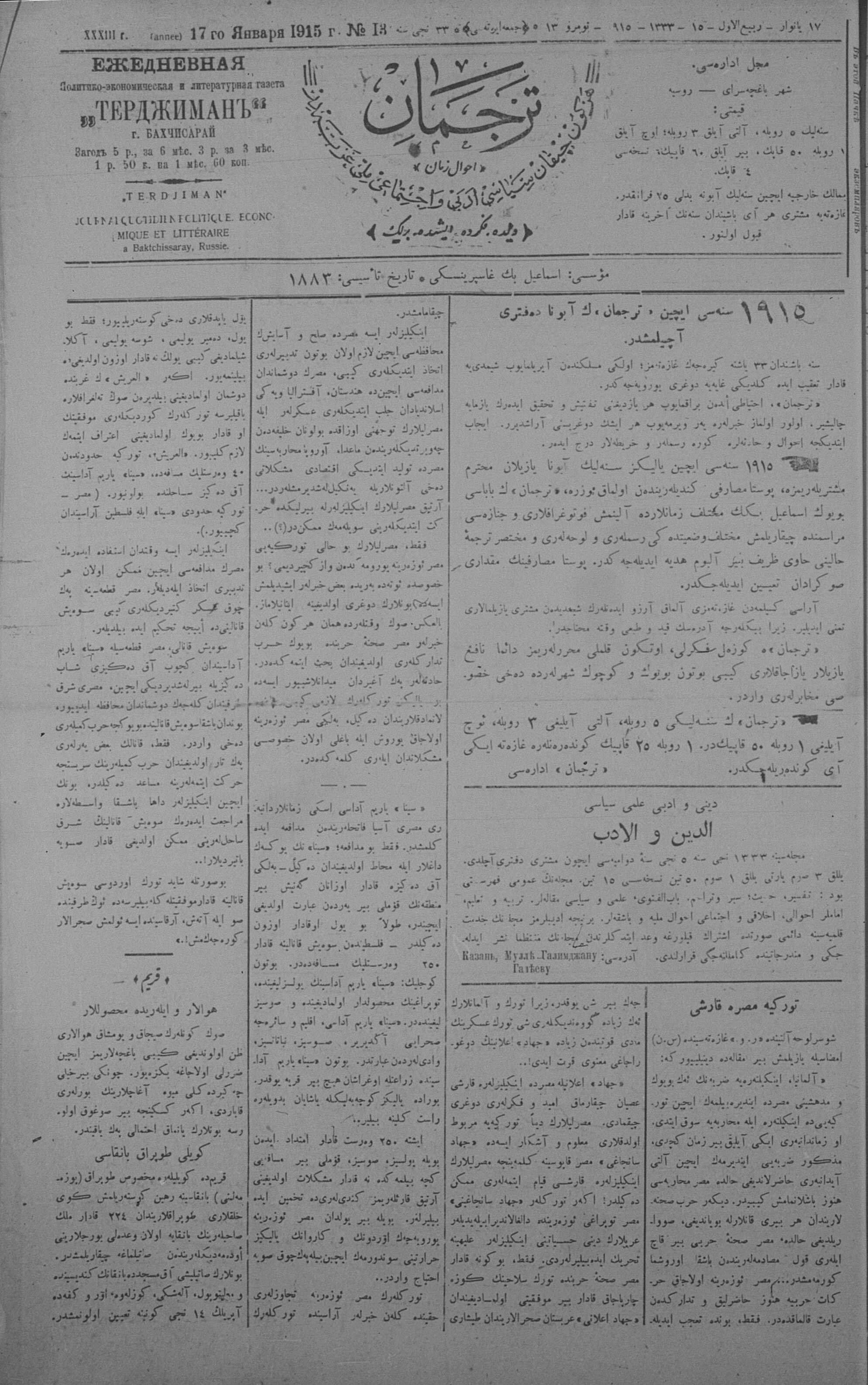 Tercüman, 17 January 1915 Year 33 No 13