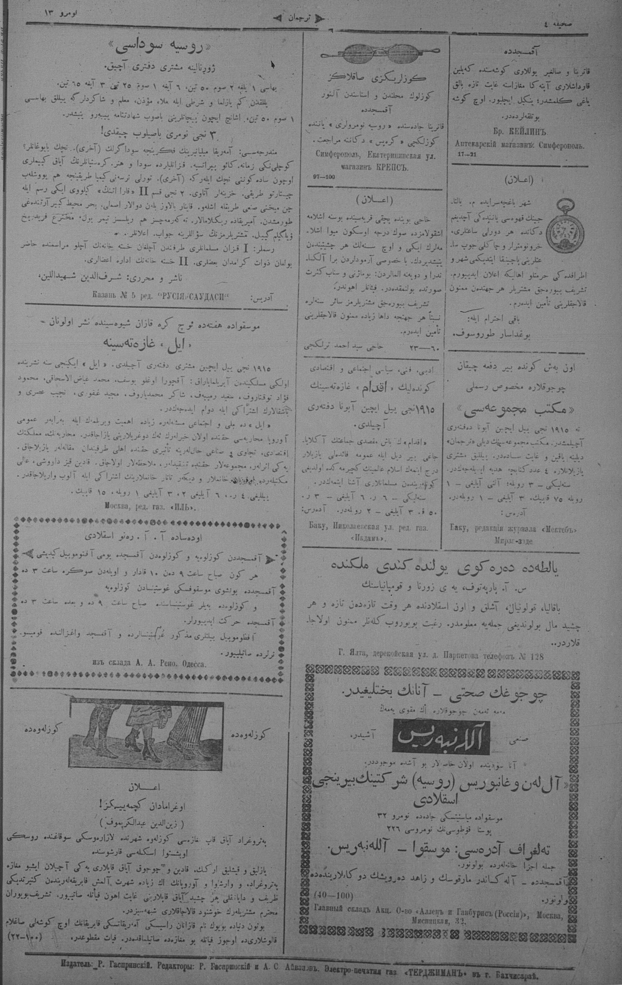 Turkish-Russian newspaper published in Crimea by İsmail Gaspıralı.
