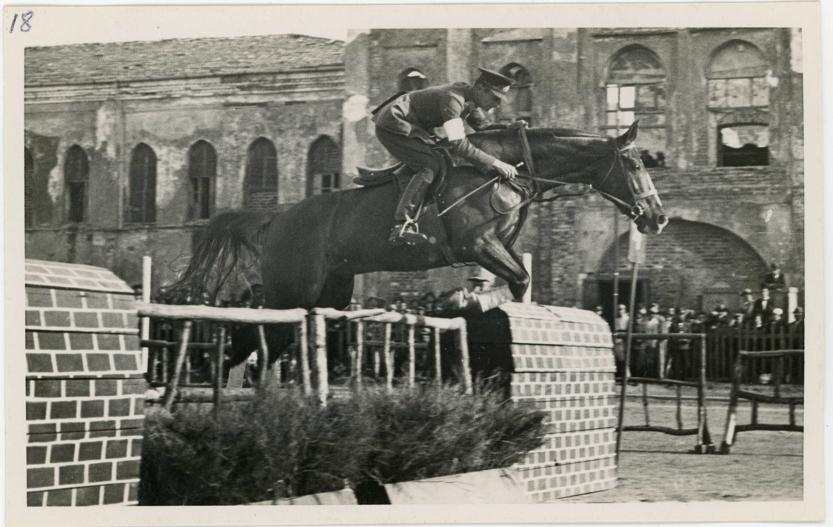 Taksim Kışlası Meydanı'nda bir süvari subayı bir engeli geçerken