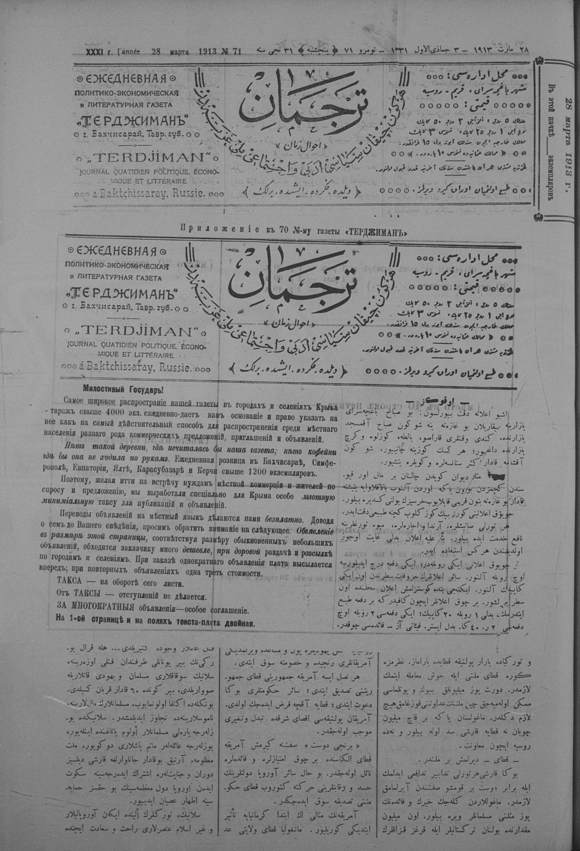 Tercüman, 28 March 1913 Year 31 No 71