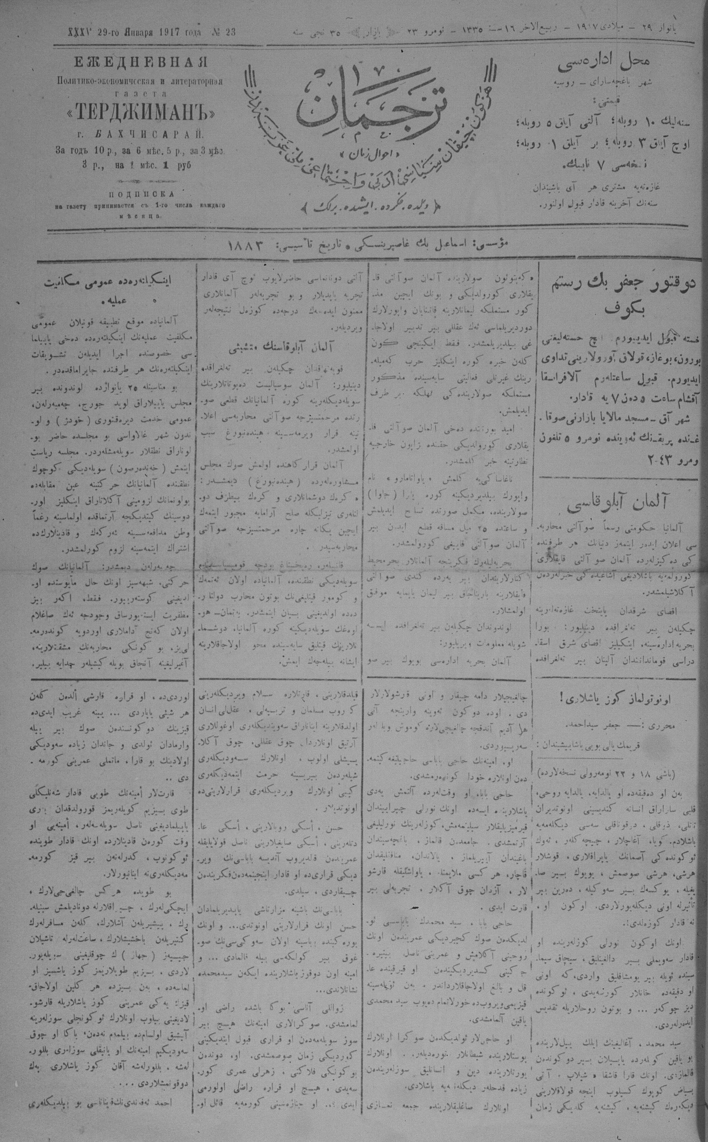 Turkish-Russian newspaper published in Crimea by İsmail Gaspıralı.