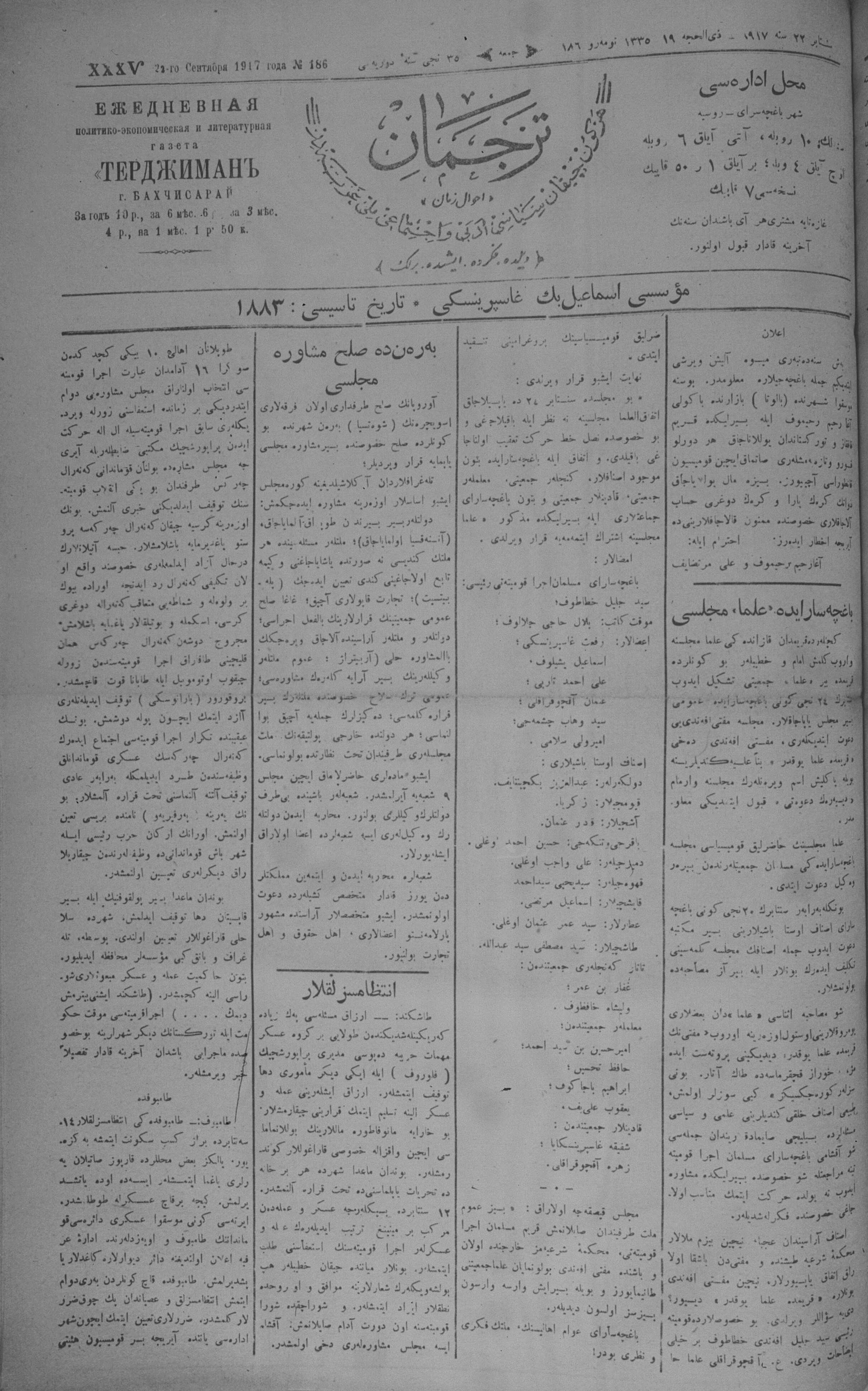 Tercüman, 22 September 1917 Year 35 No 186