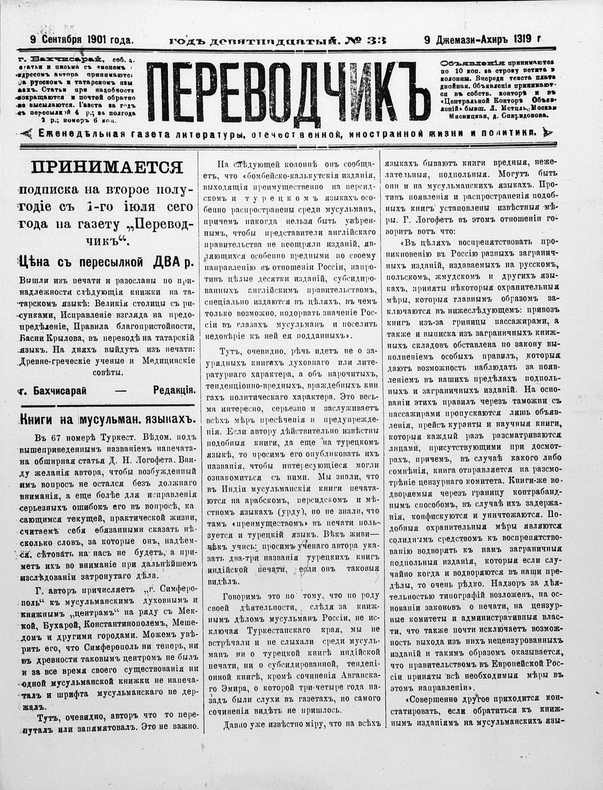 Turkish-Russian newspaper published in Crimea by İsmail Gaspıralı.