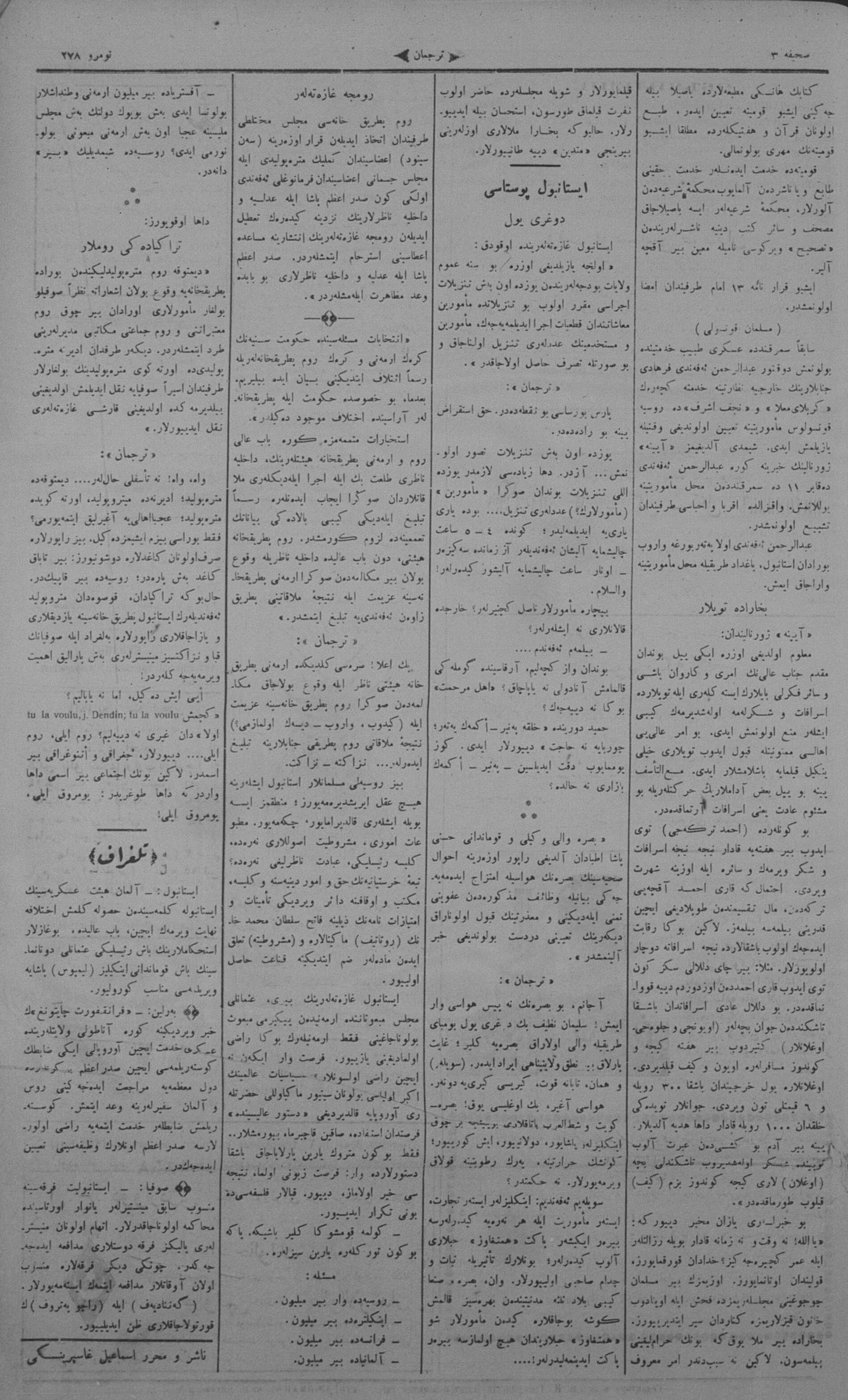 The name of the newspaper changed to Tercüman-ı Ahval-i Zaman in 1905. In 1909, it started to be published under its first name, Tercüman.