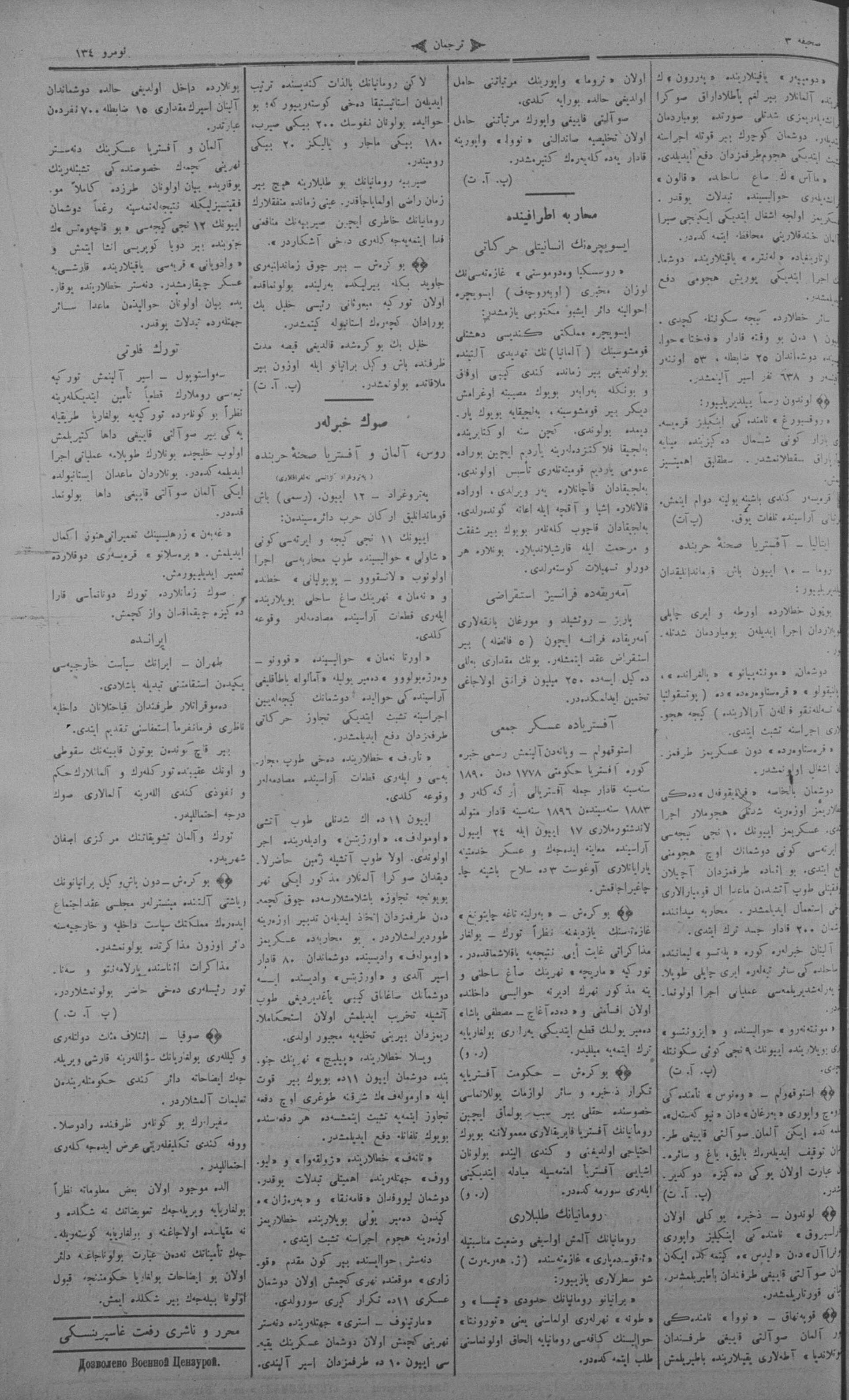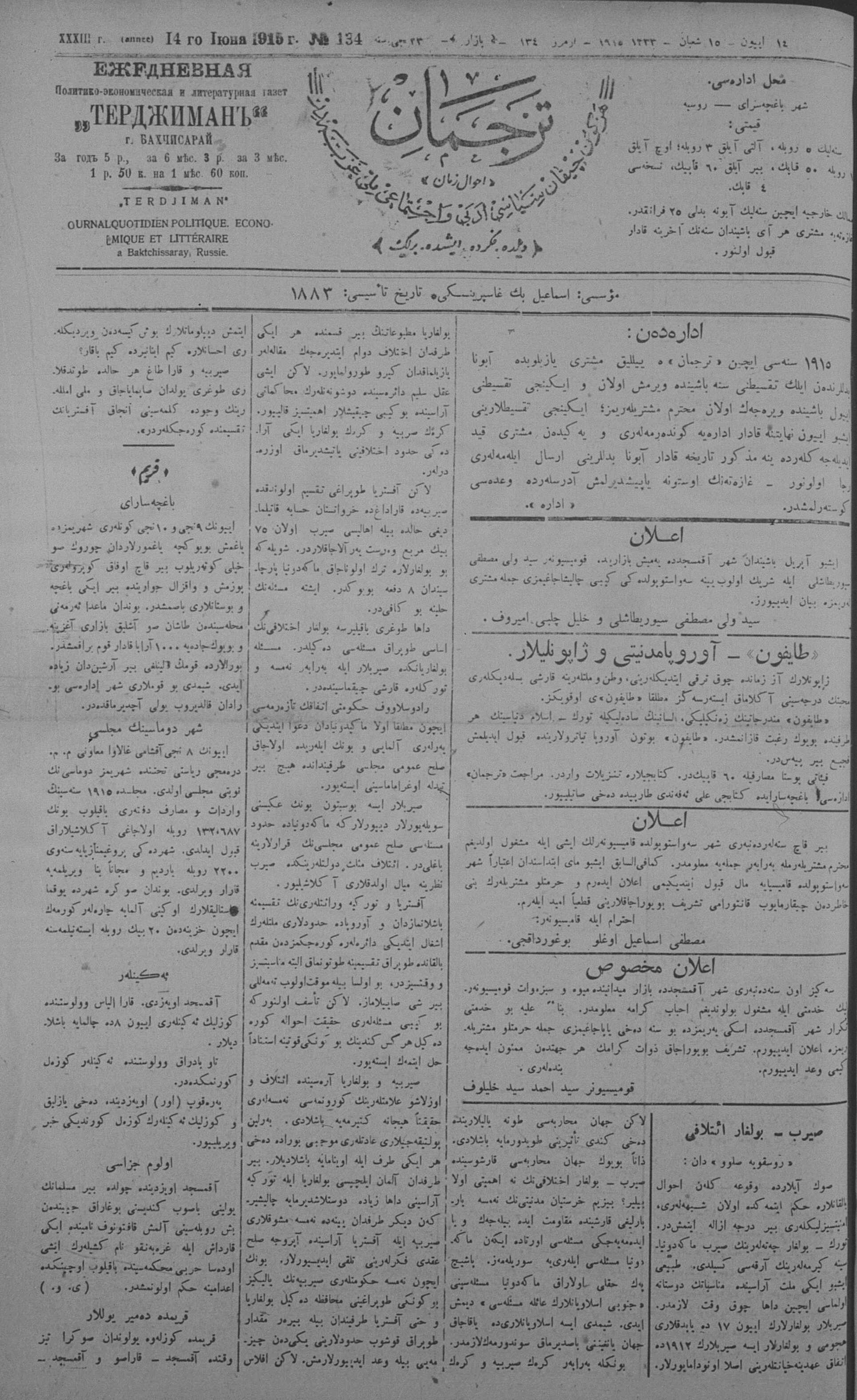 Tercüman, 14 June 1915 Year 33 No 134