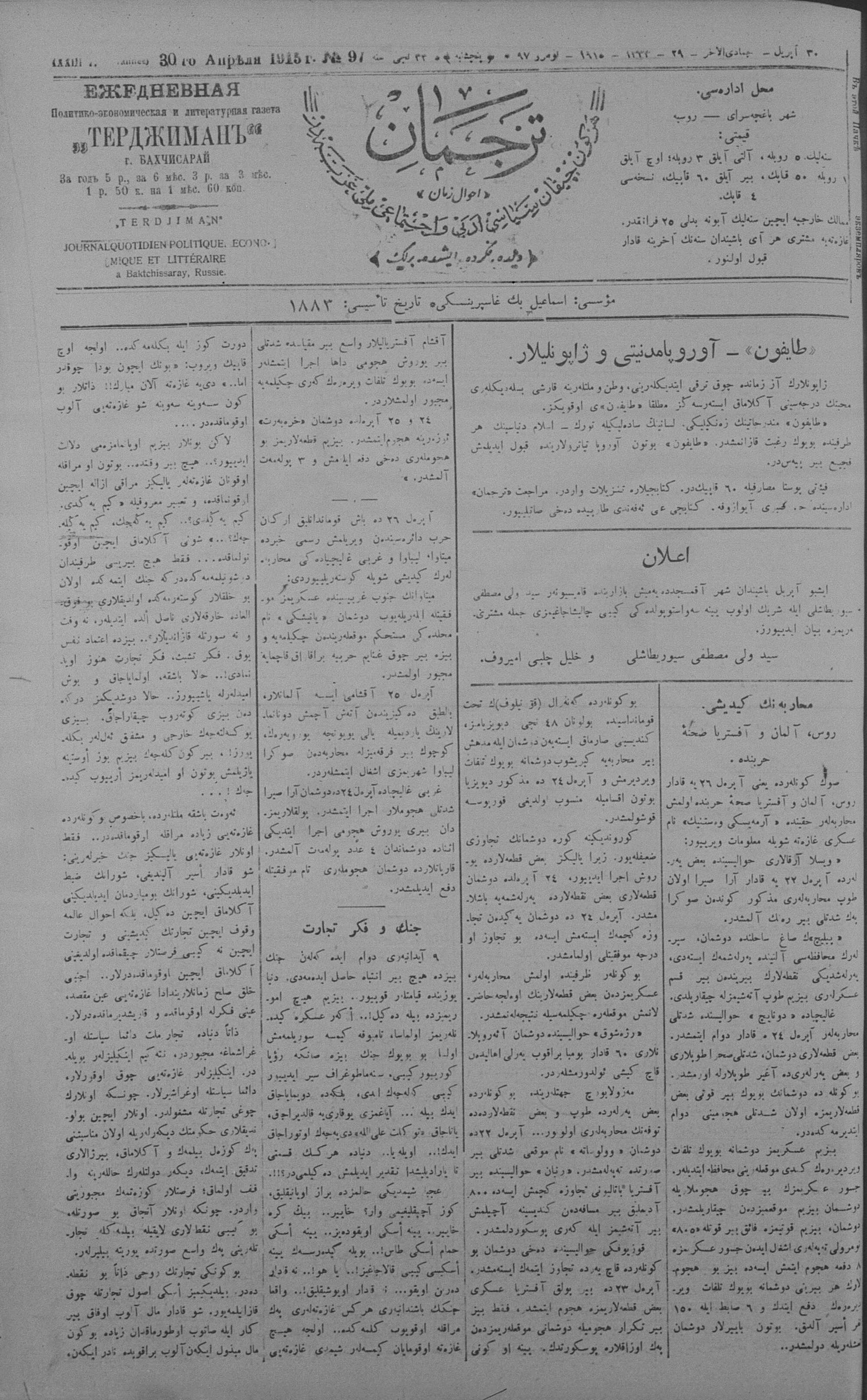 Turkish-Russian newspaper published in Crimea by İsmail Gaspıralı.