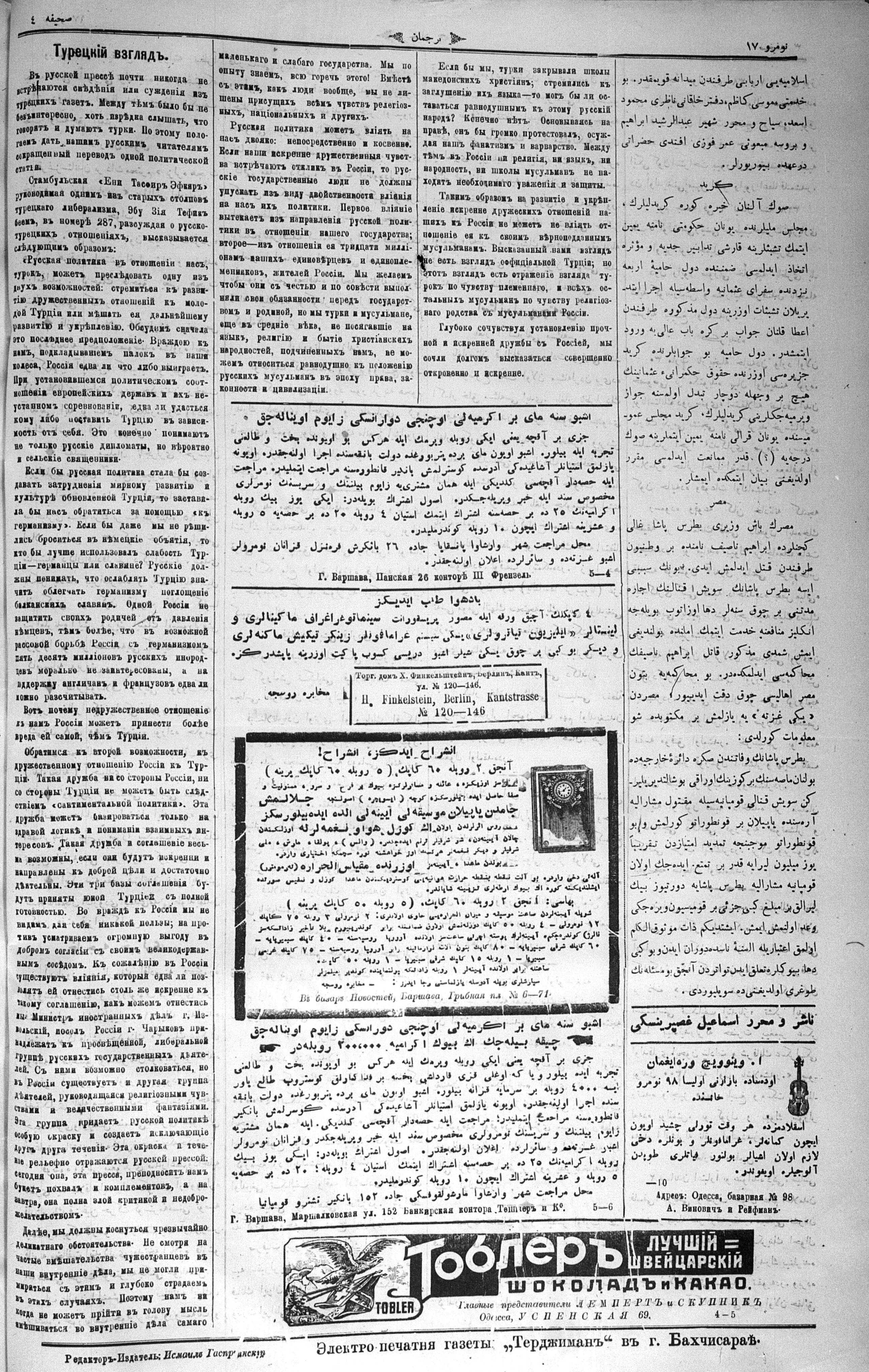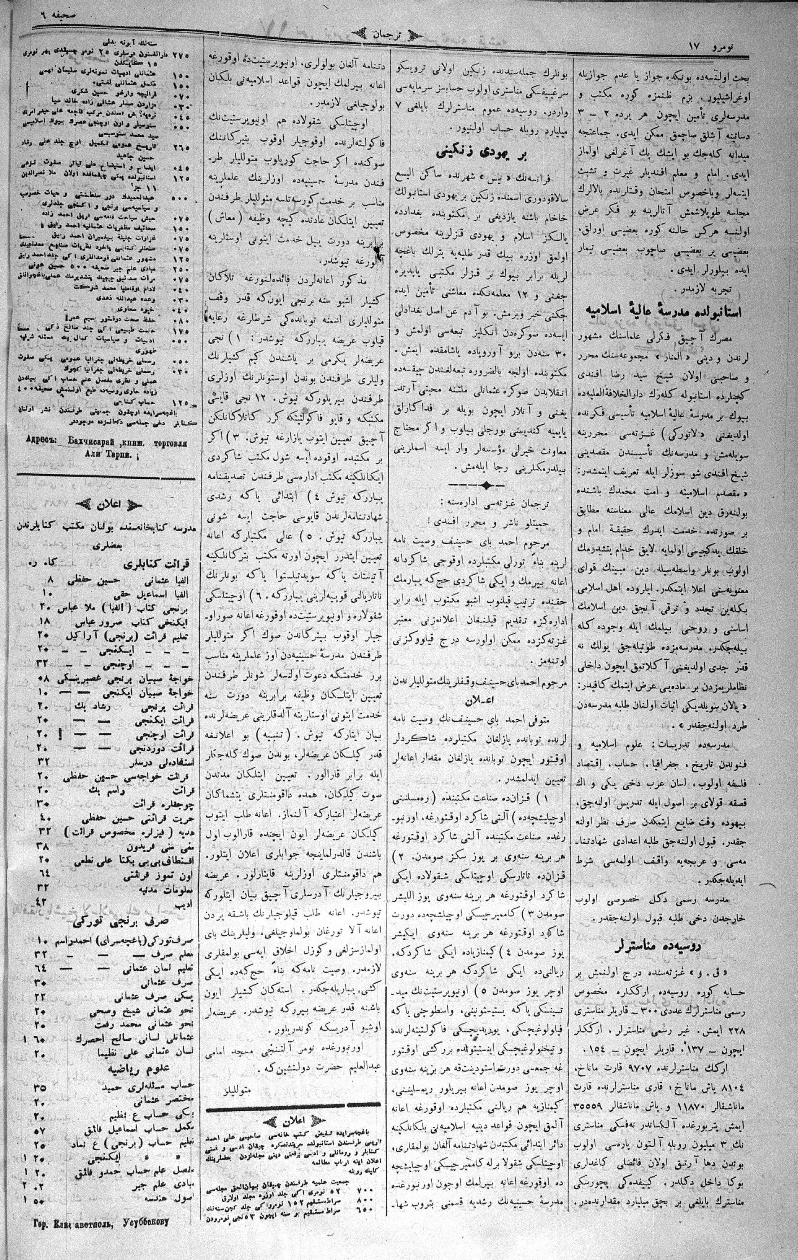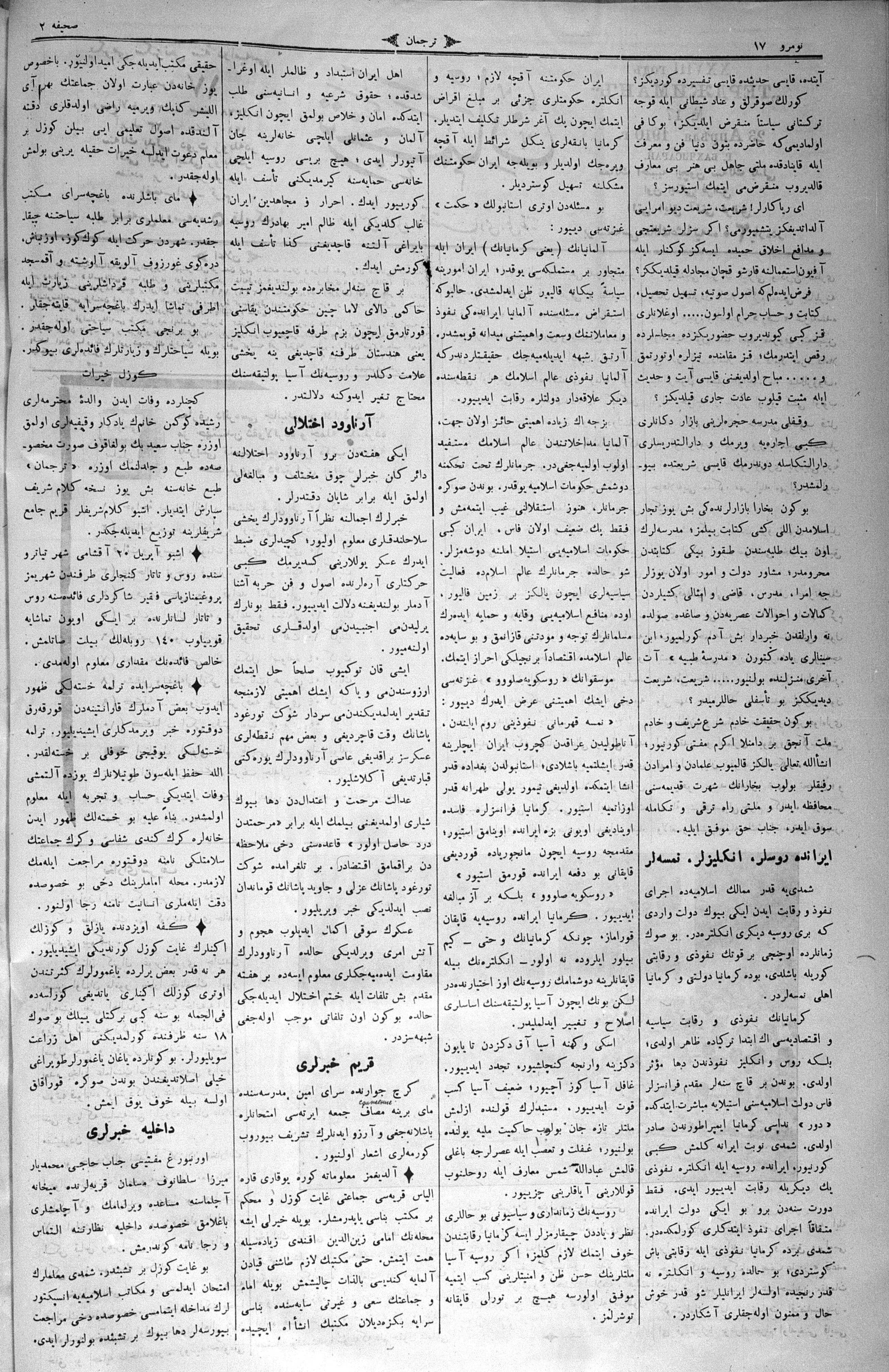 Turkish-Russian newspaper published in Crimea by İsmail Gaspıralı.