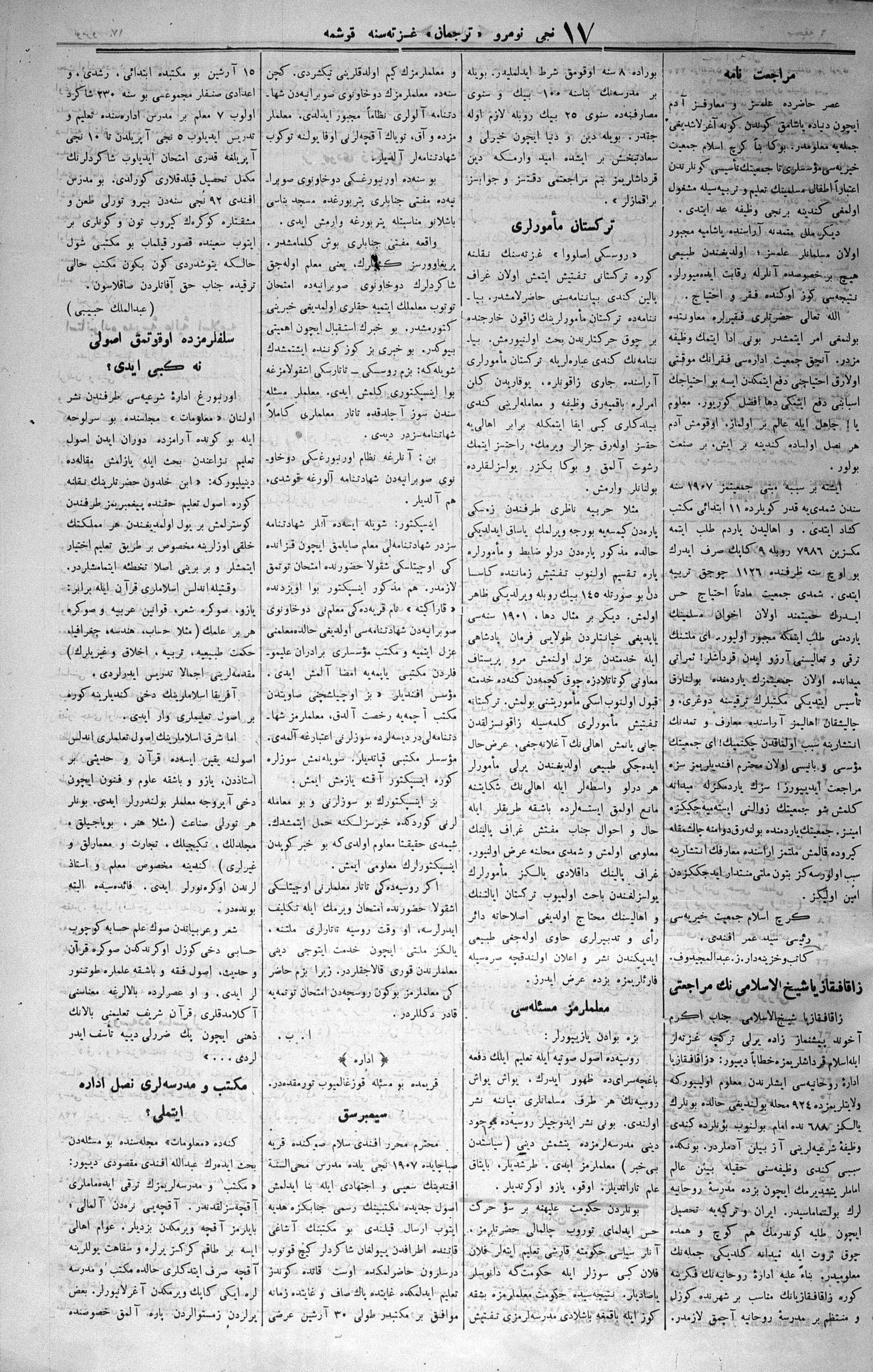 The name of the newspaper changed to Tercüman-ı Ahval-i Zaman in 1905. In 1909, it started to be published under its first name, Tercüman.