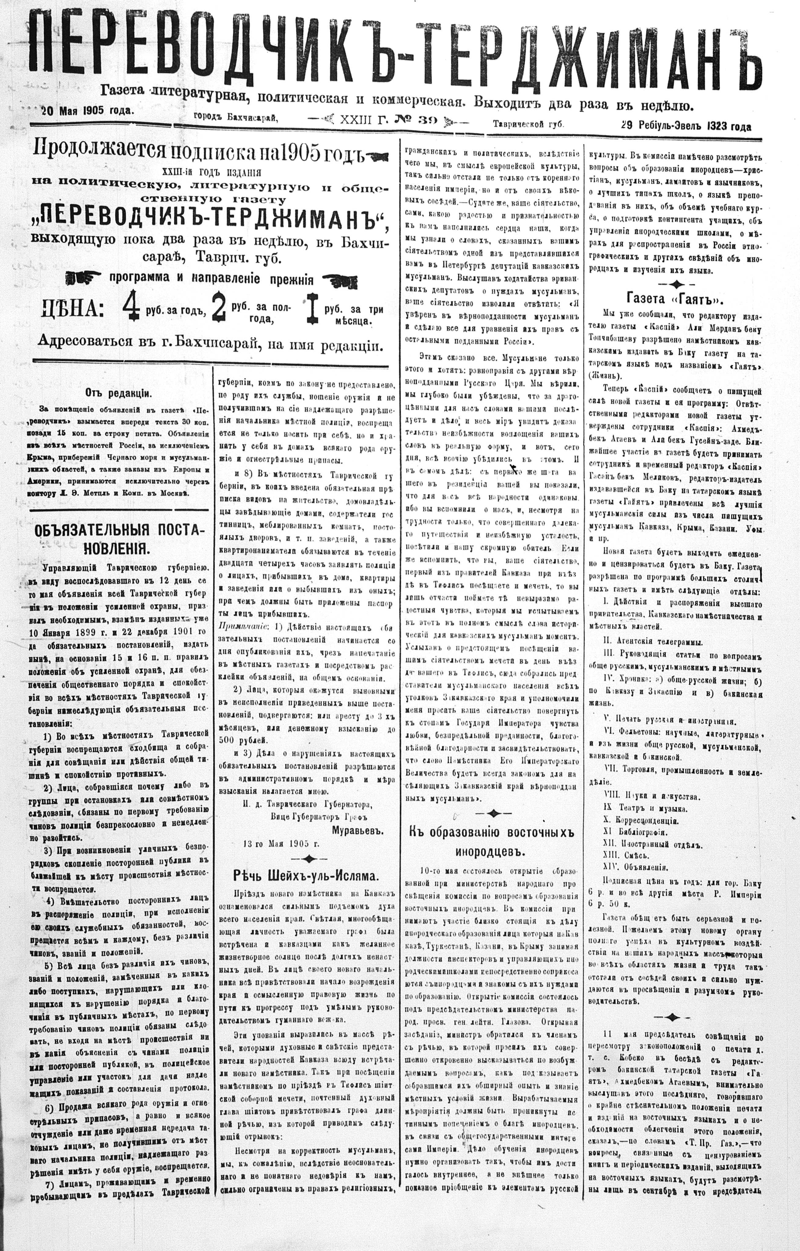 Turkish-Russian newspaper published in Crimea by İsmail Gaspıralı.
