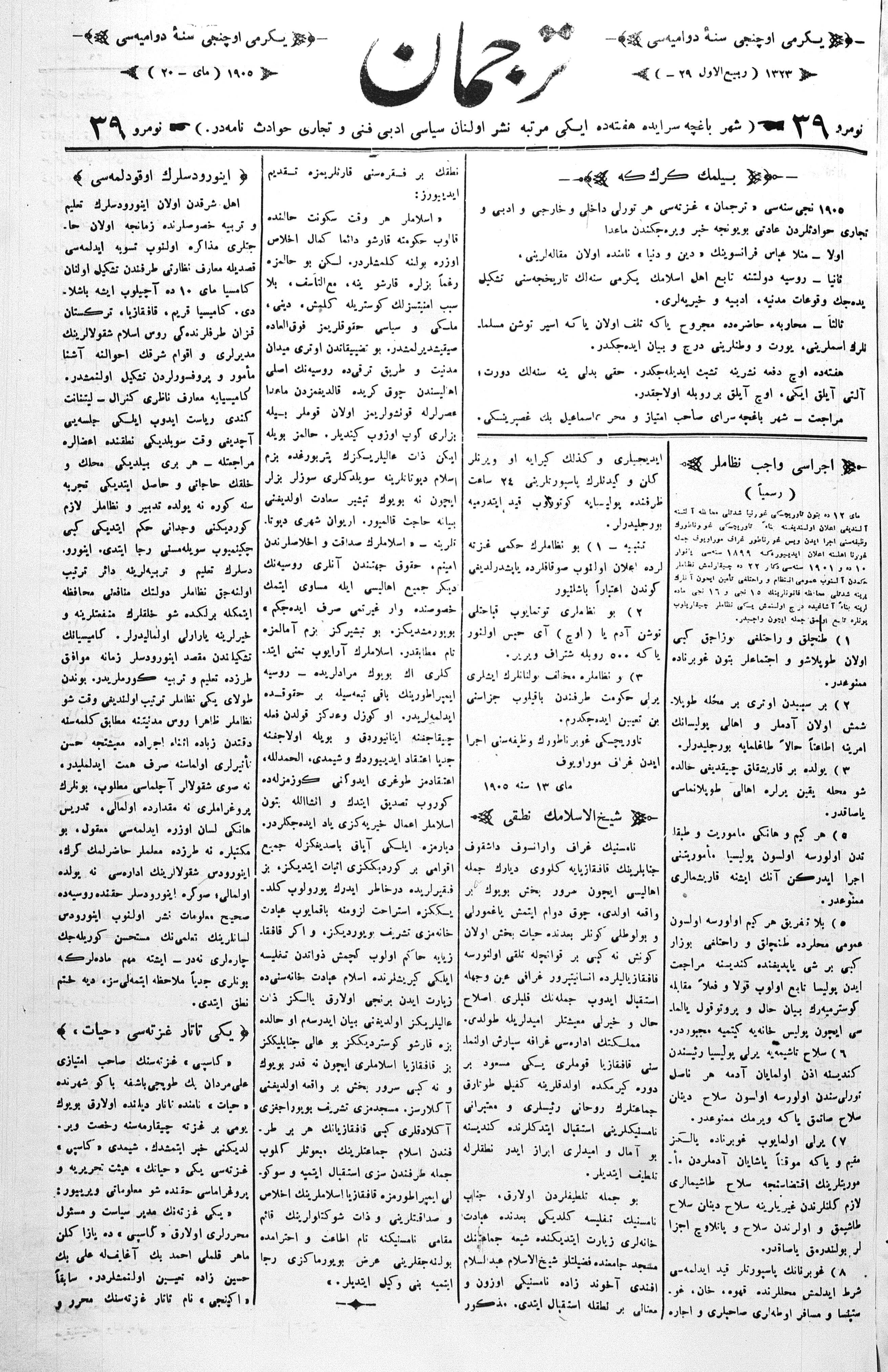 The name of the newspaper changed to Tercüman-ı Ahval-i Zaman in 1905. In 1909, it started to be published under its first name, Tercüman.