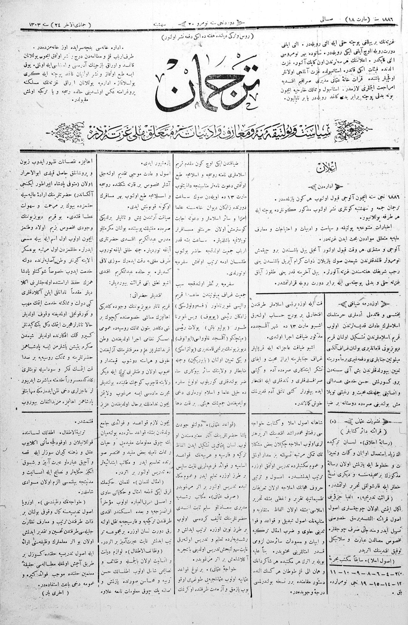 Tercüman, 18 March 1886 Year 4 No 20