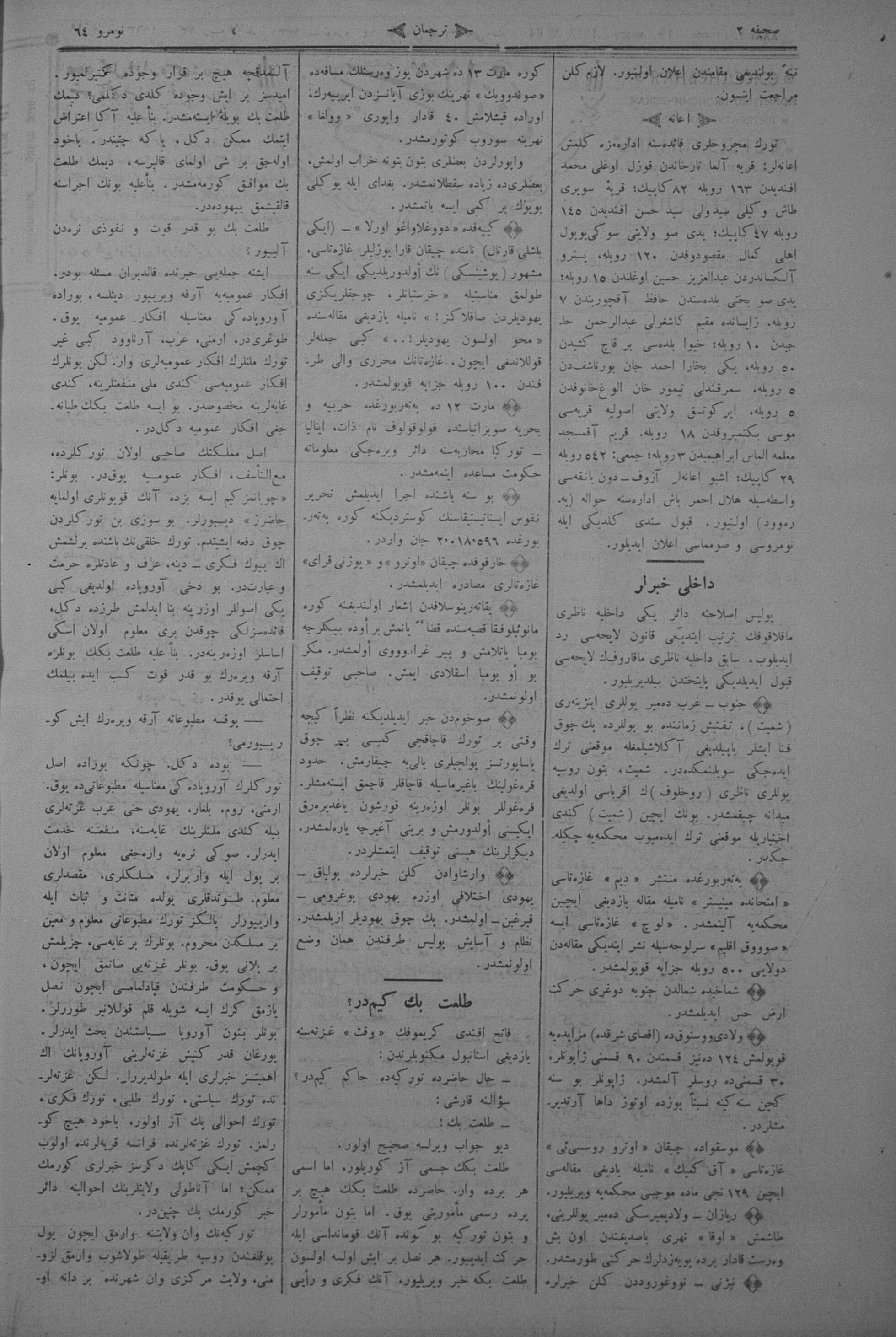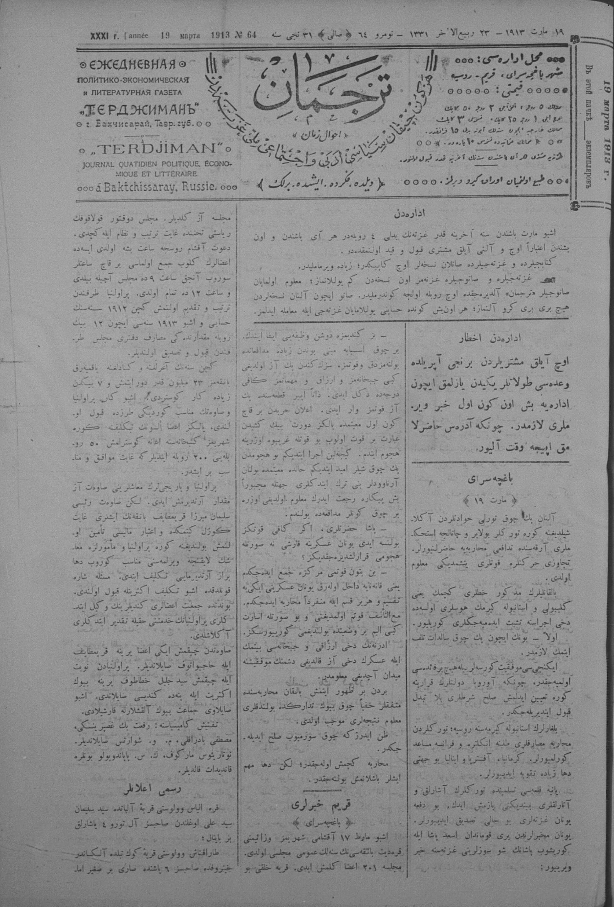 Tercüman, 19 March 1913 Year 31 No 64