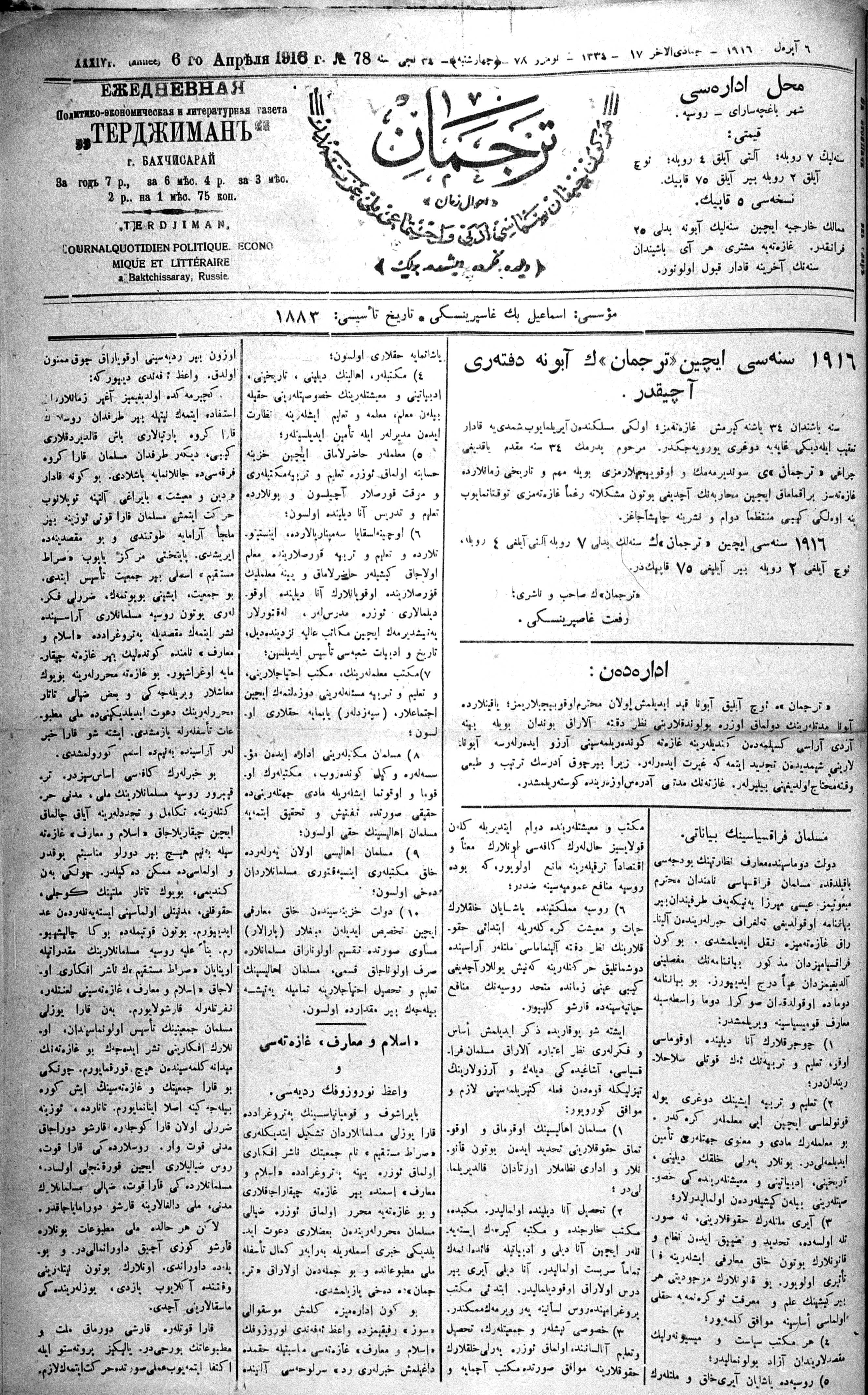 Turkish-Russian newspaper published in Crimea by İsmail Gaspıralı.