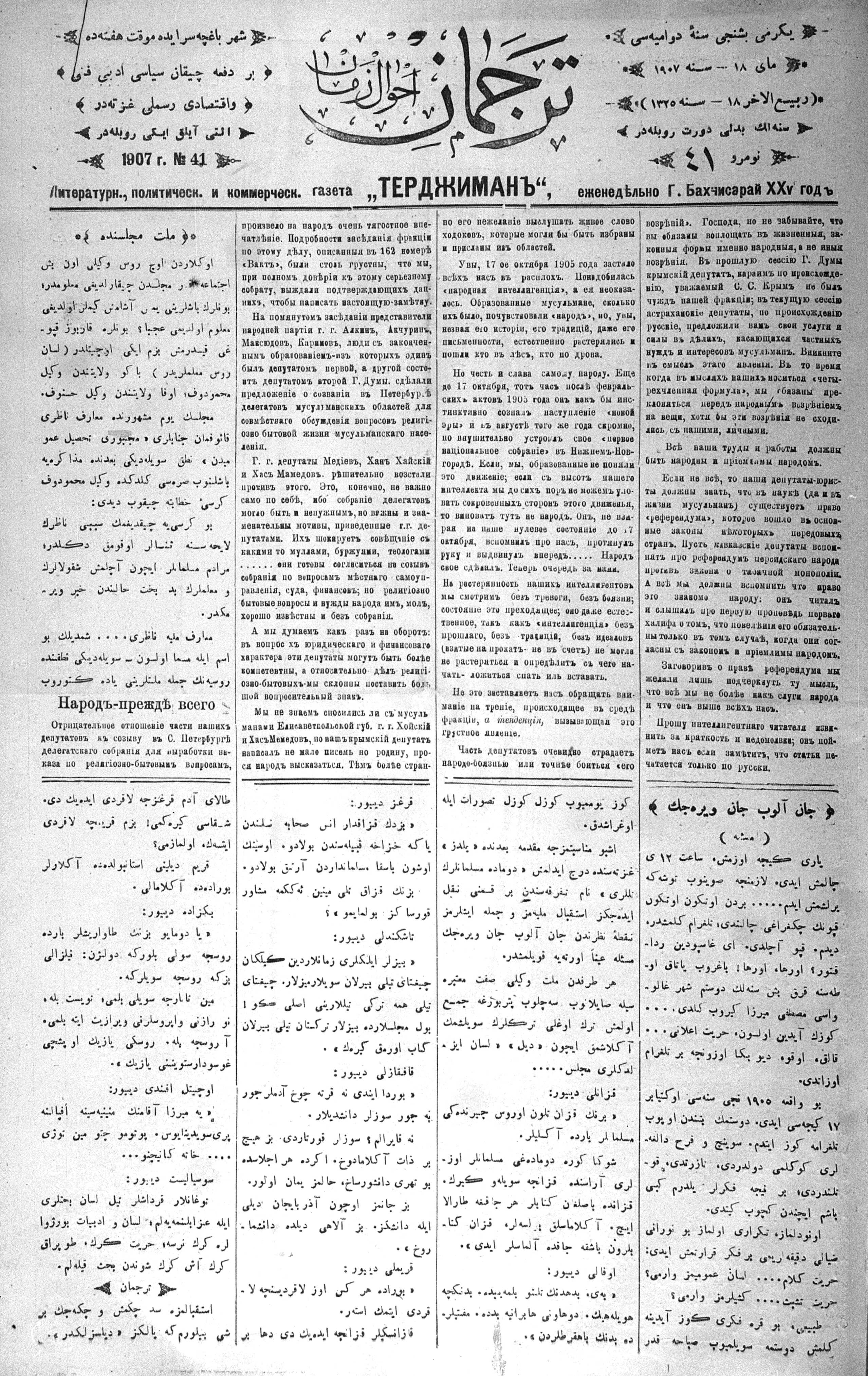 Tercüman, 18 May 1907 Year 25 No 41