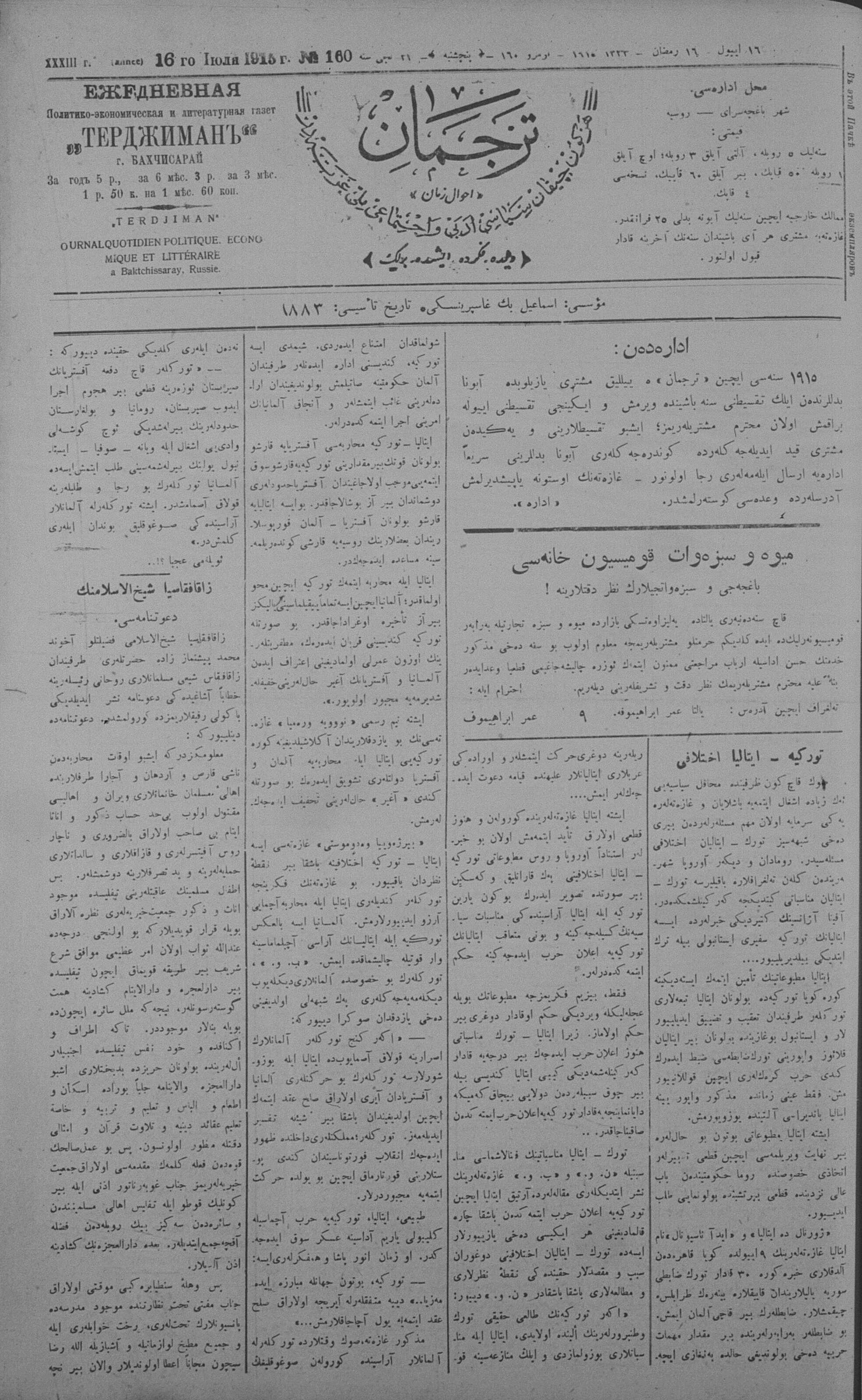 Tercüman, 16 July 1915 Year 33 No 160