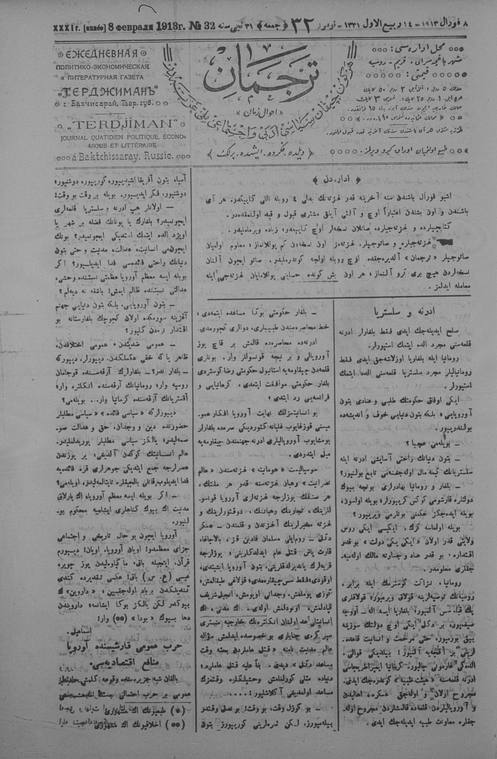 Tercüman, 08 February 1913 Year 31 No 32