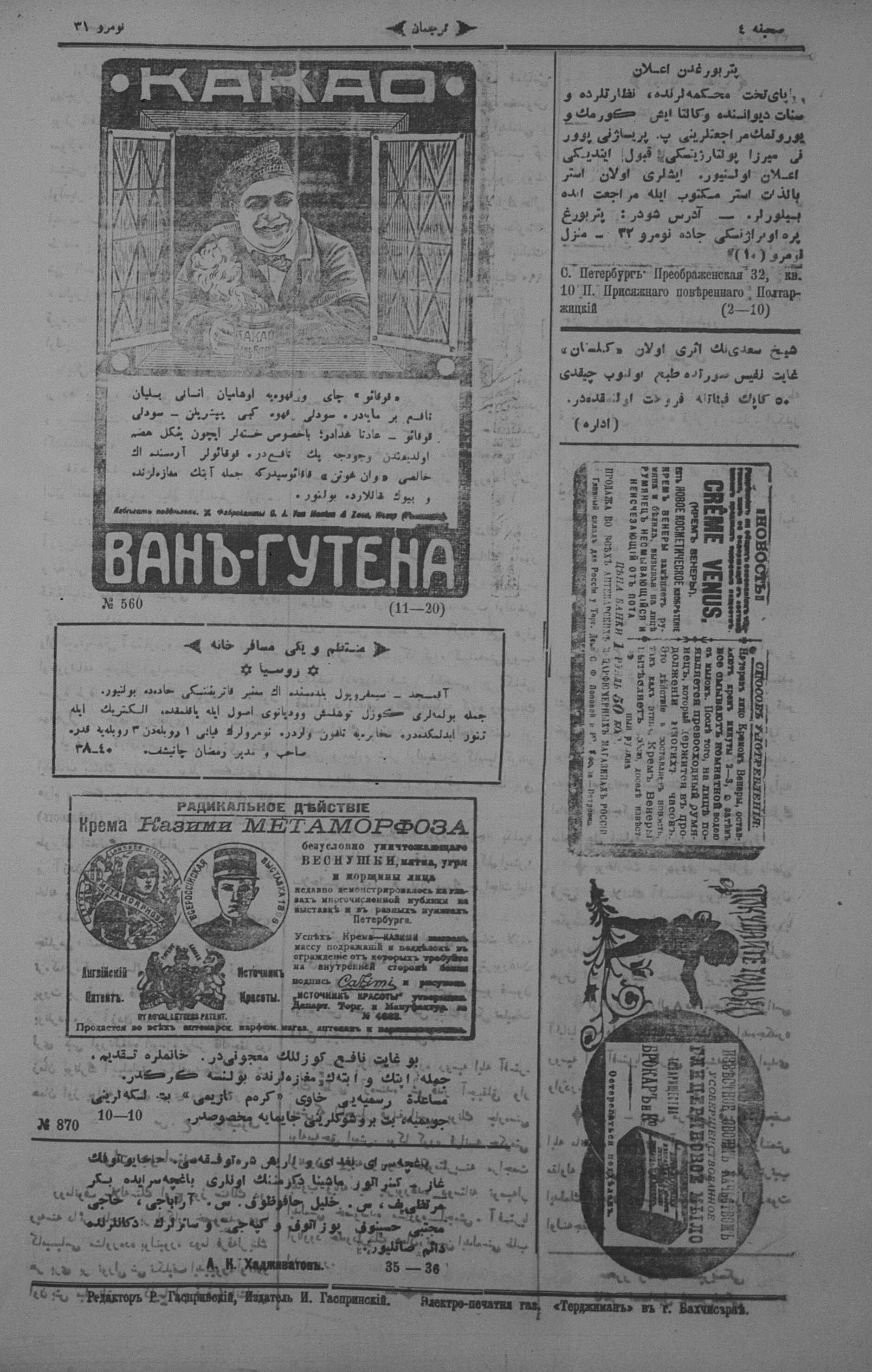 Different spellings of Tercüman: Terdzhiman, Terjuman, Perevodçik and Terjiman.