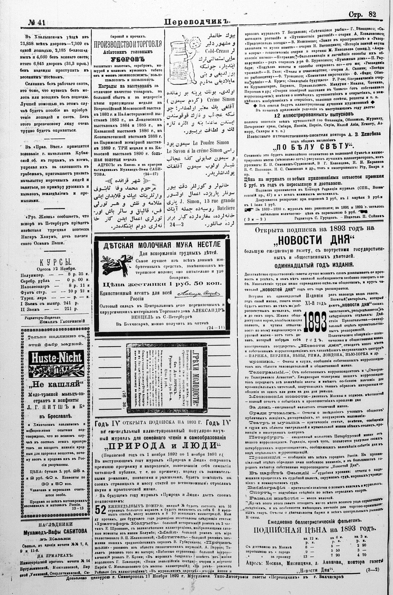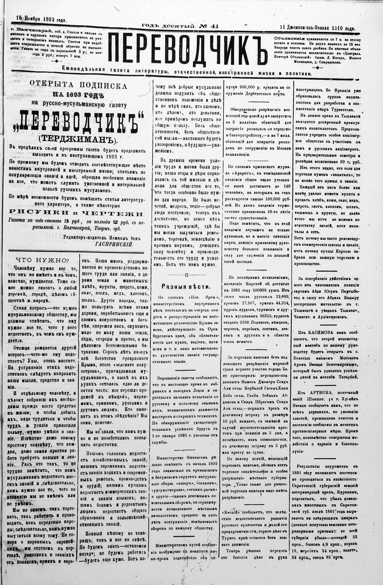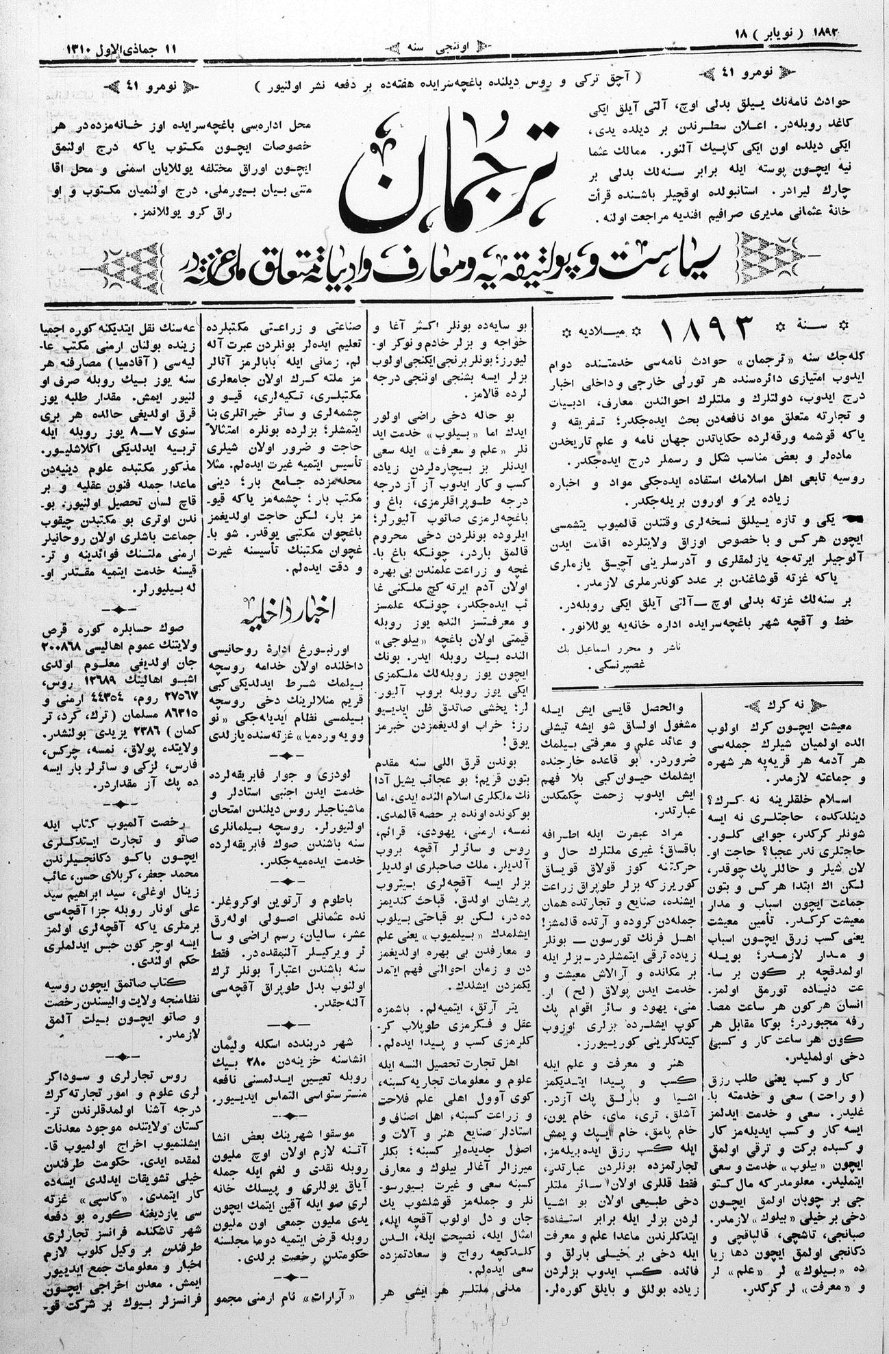 Tercüman, 18 November 1892 Year 10 No 41