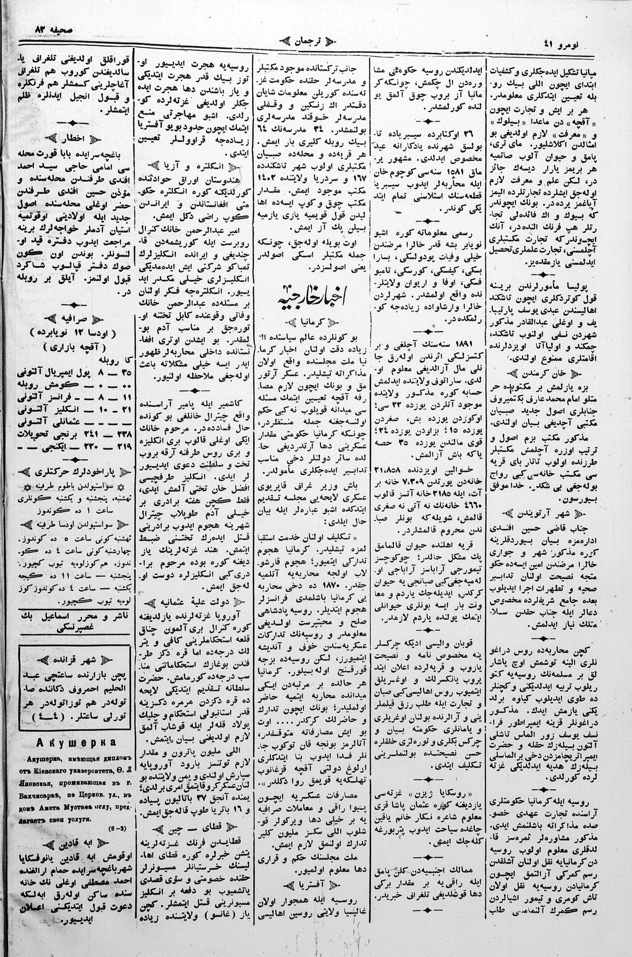 Turkish-Russian newspaper published in Crimea by İsmail Gaspıralı.