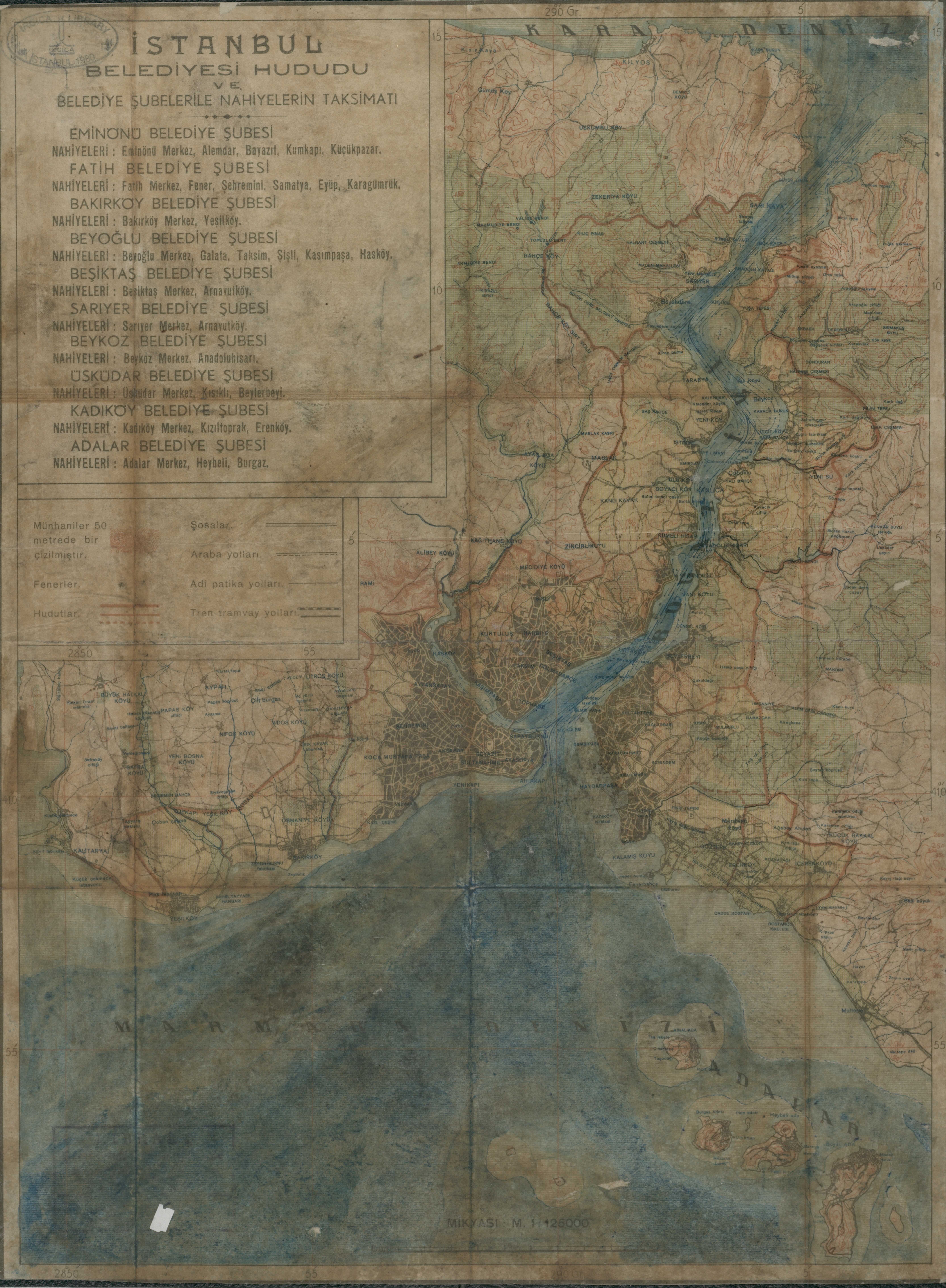 İstanbul Belediyesi hududu ve belediye şubelerile nahiyelerin taksimatı