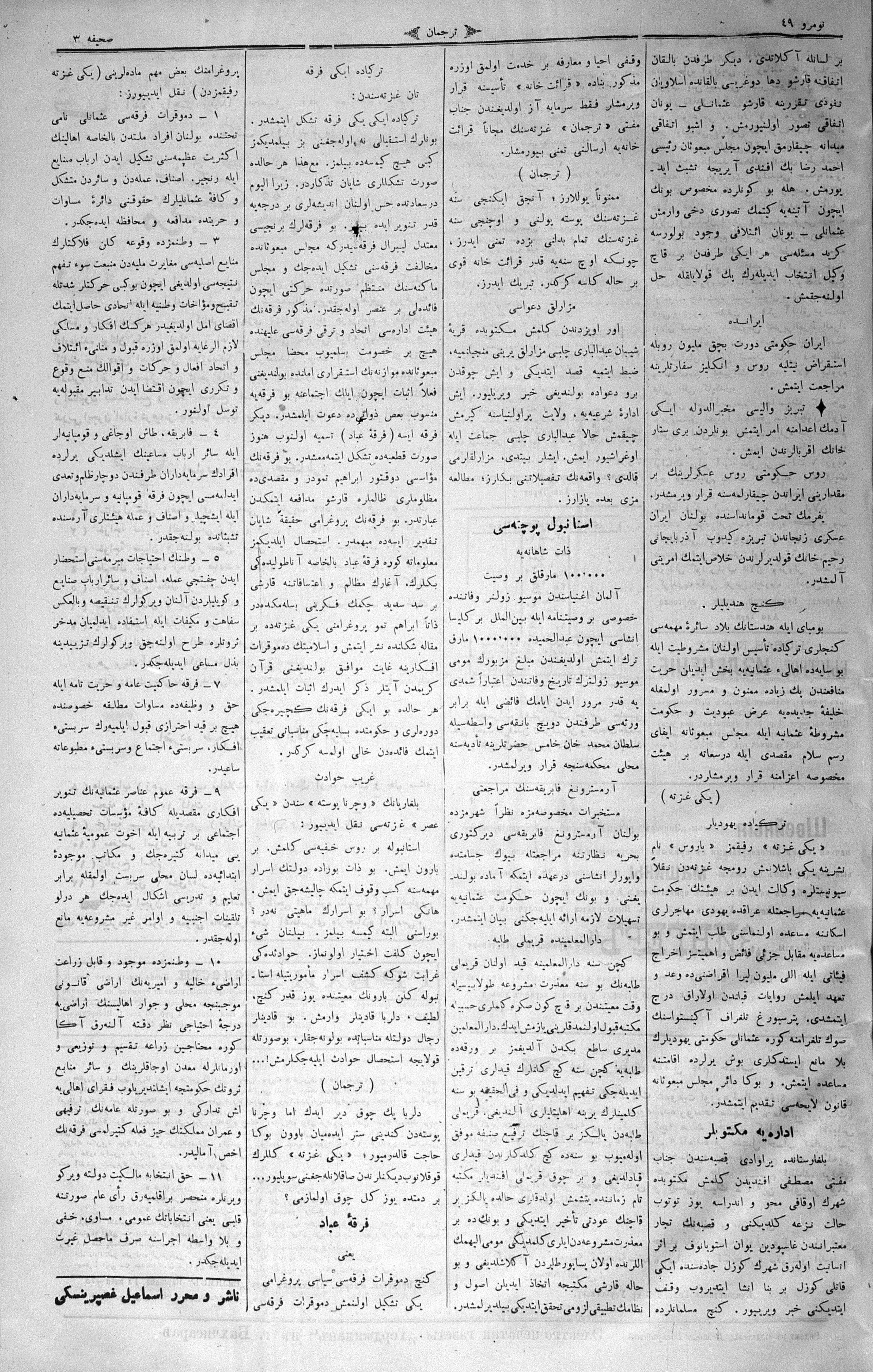 The name of the newspaper changed to Tercüman-ı Ahval-i Zaman in 1905. In 1909, it started to be published under its first name, Tercüman.