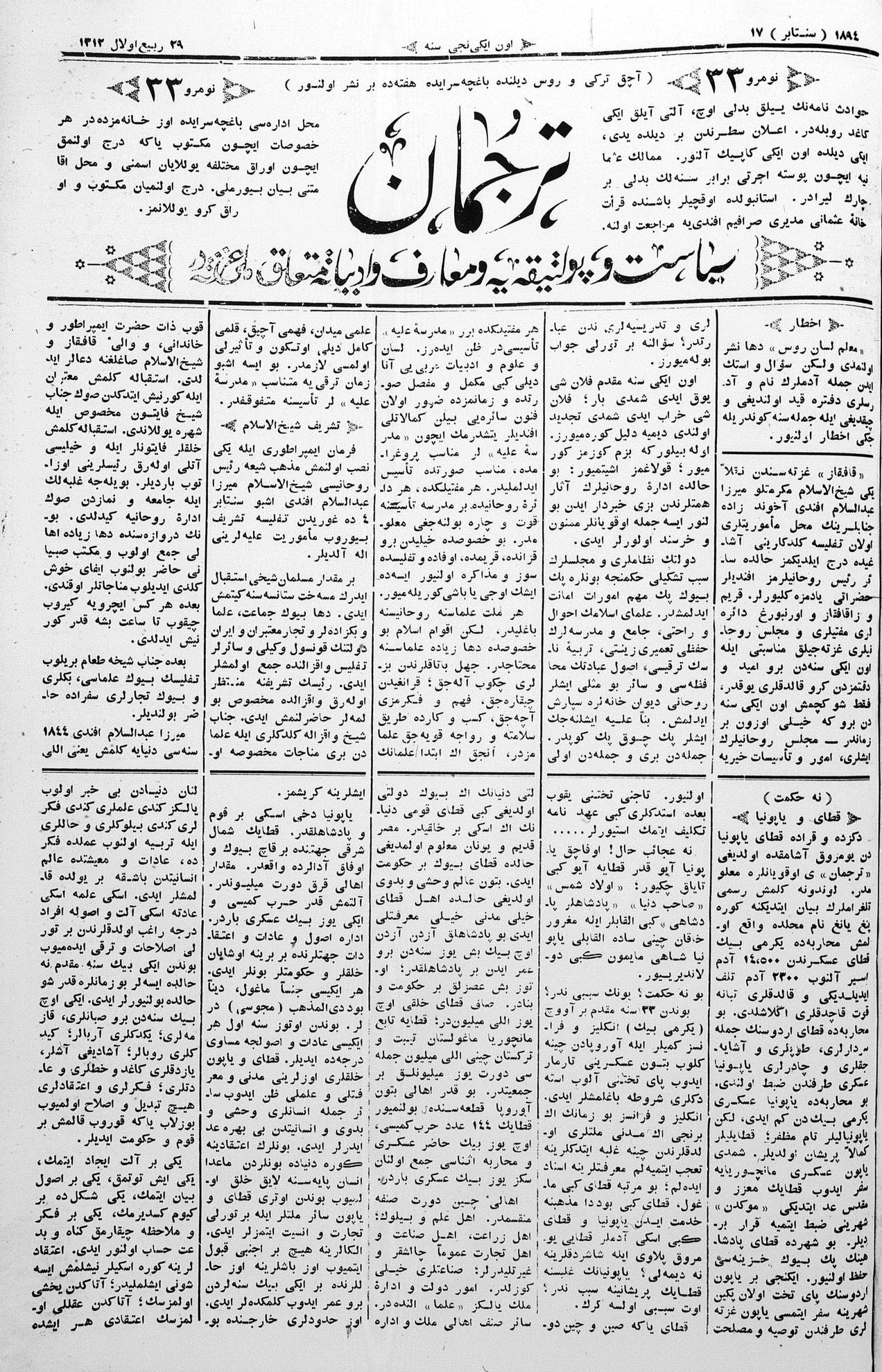 Tercüman, 17 September 1894 Year 12 No 33