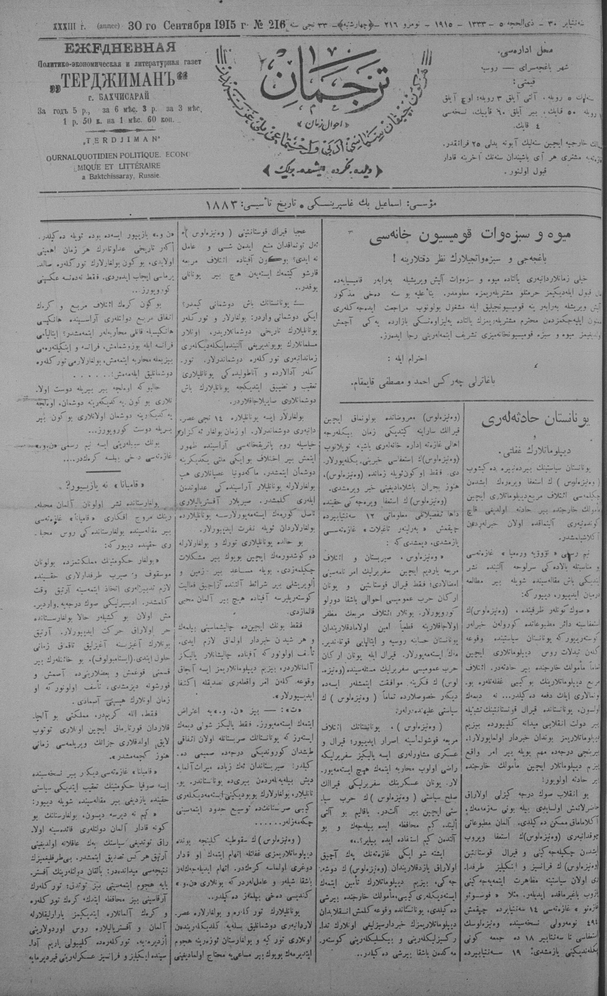Turkish-Russian newspaper published in Crimea by İsmail Gaspıralı.