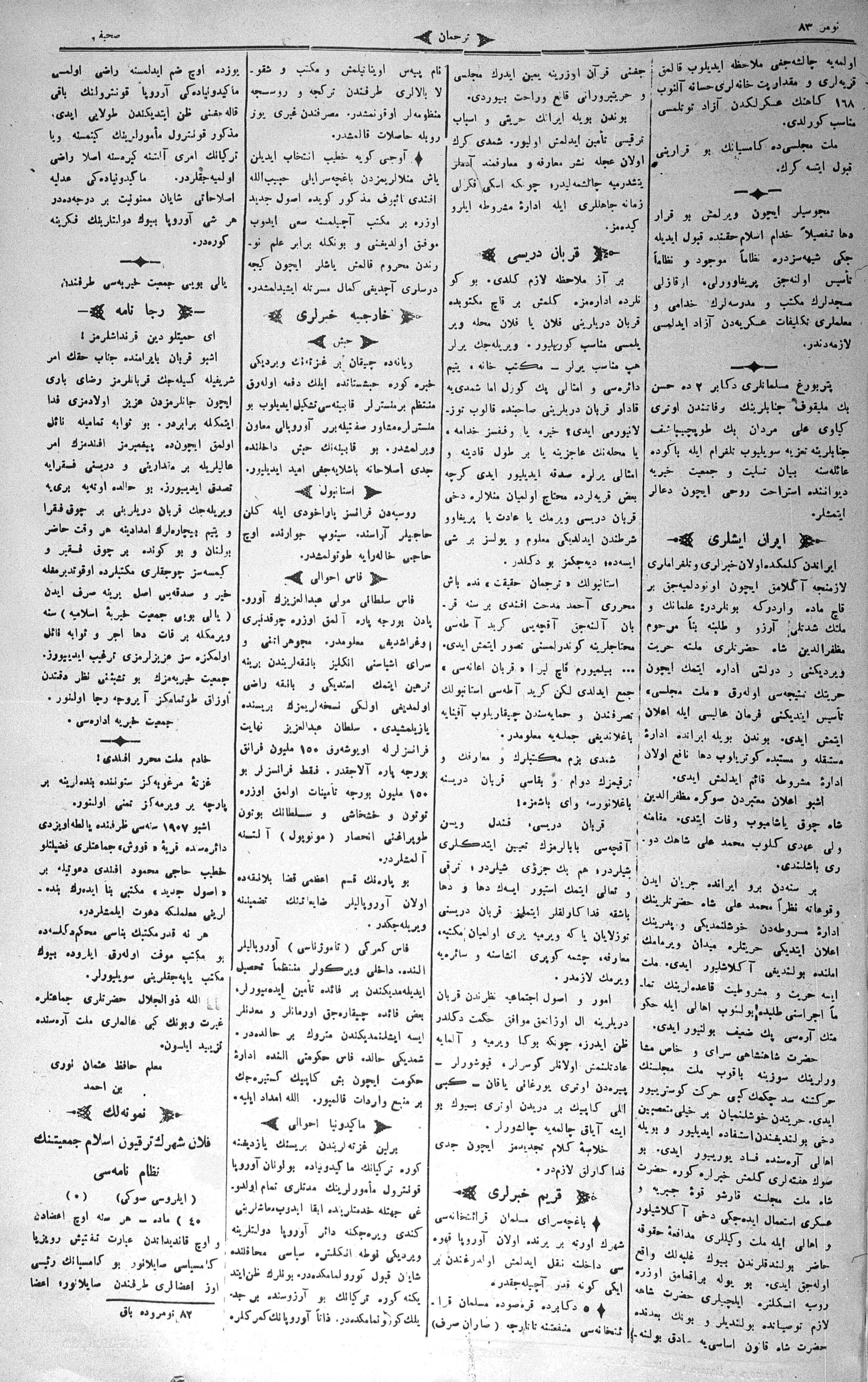 The name of the newspaper changed to Tercüman-ı Ahval-i Zaman in 1905. In 1909, it started to be published under its first name, Tercüman.