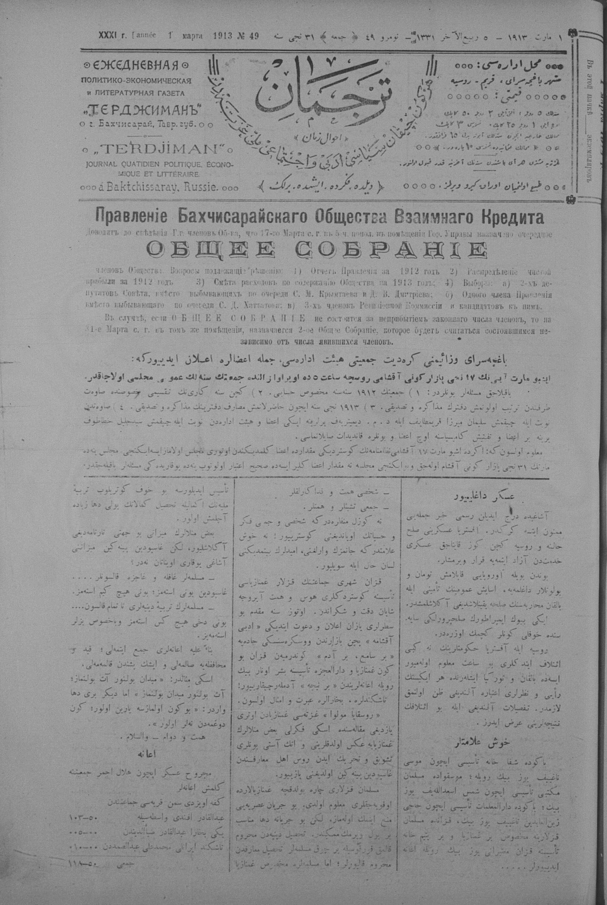 Tercüman, 01 March 1913 Year 31 No 49