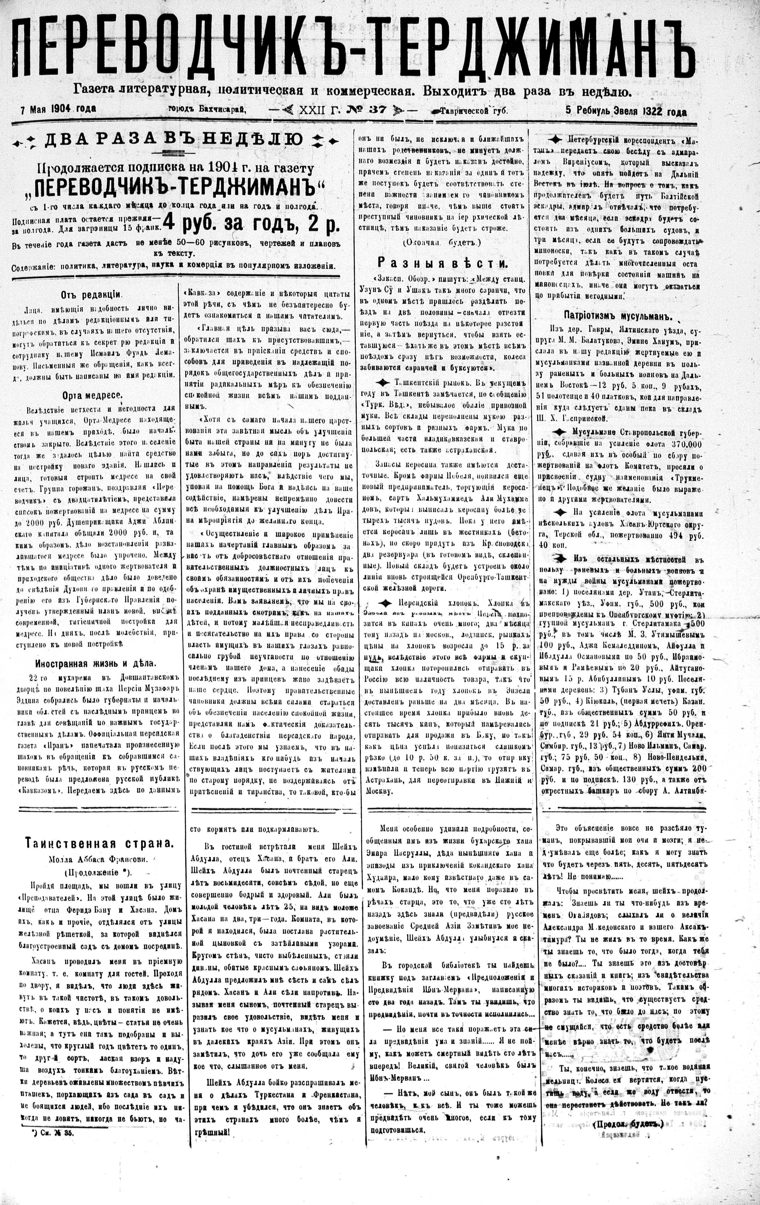 Turkish-Russian newspaper published in Crimea by İsmail Gaspıralı.