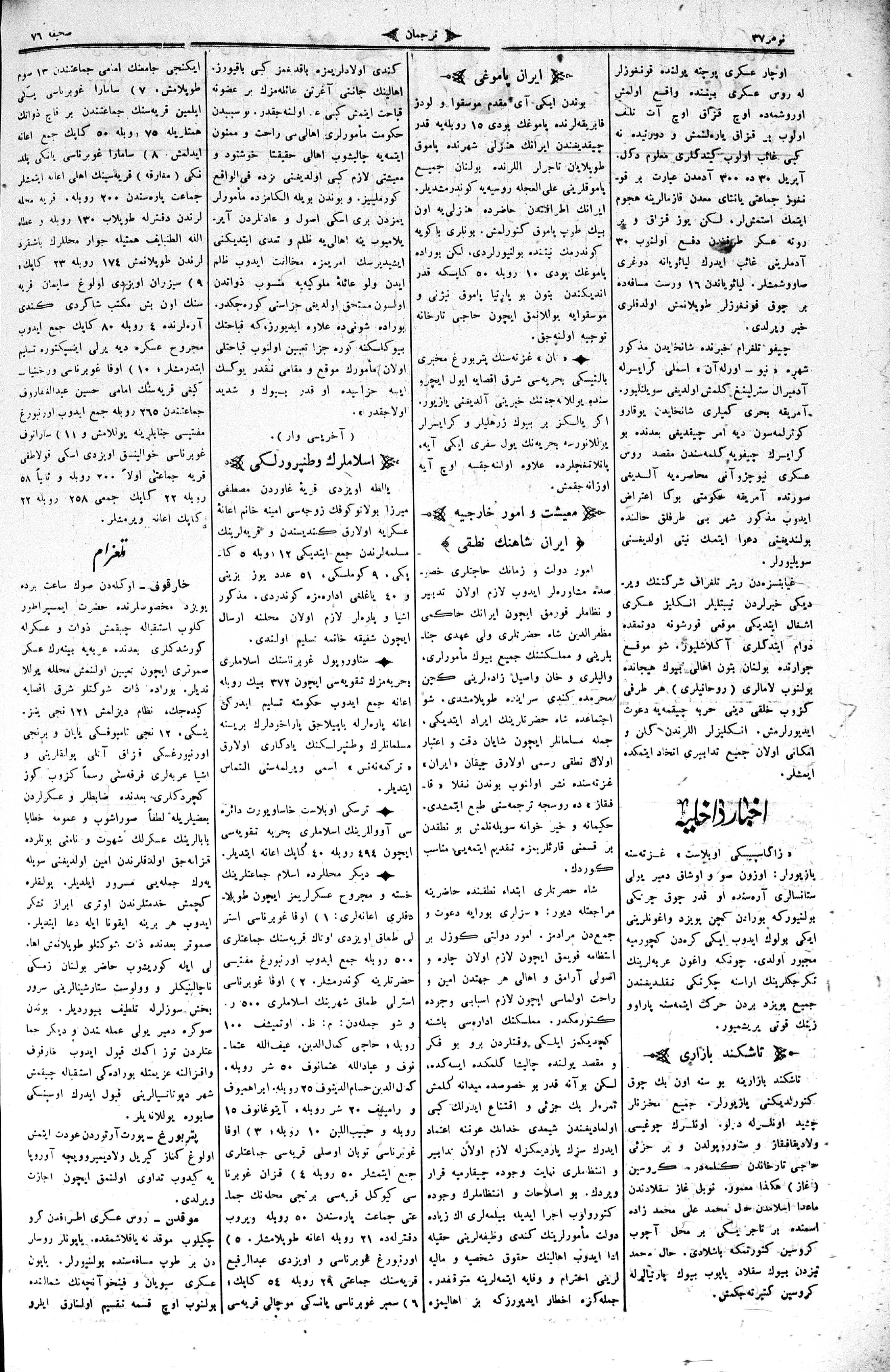 The name of the newspaper changed to Tercüman-ı Ahval-i Zaman in 1905. In 1909, it started to be published under its first name, Tercüman.