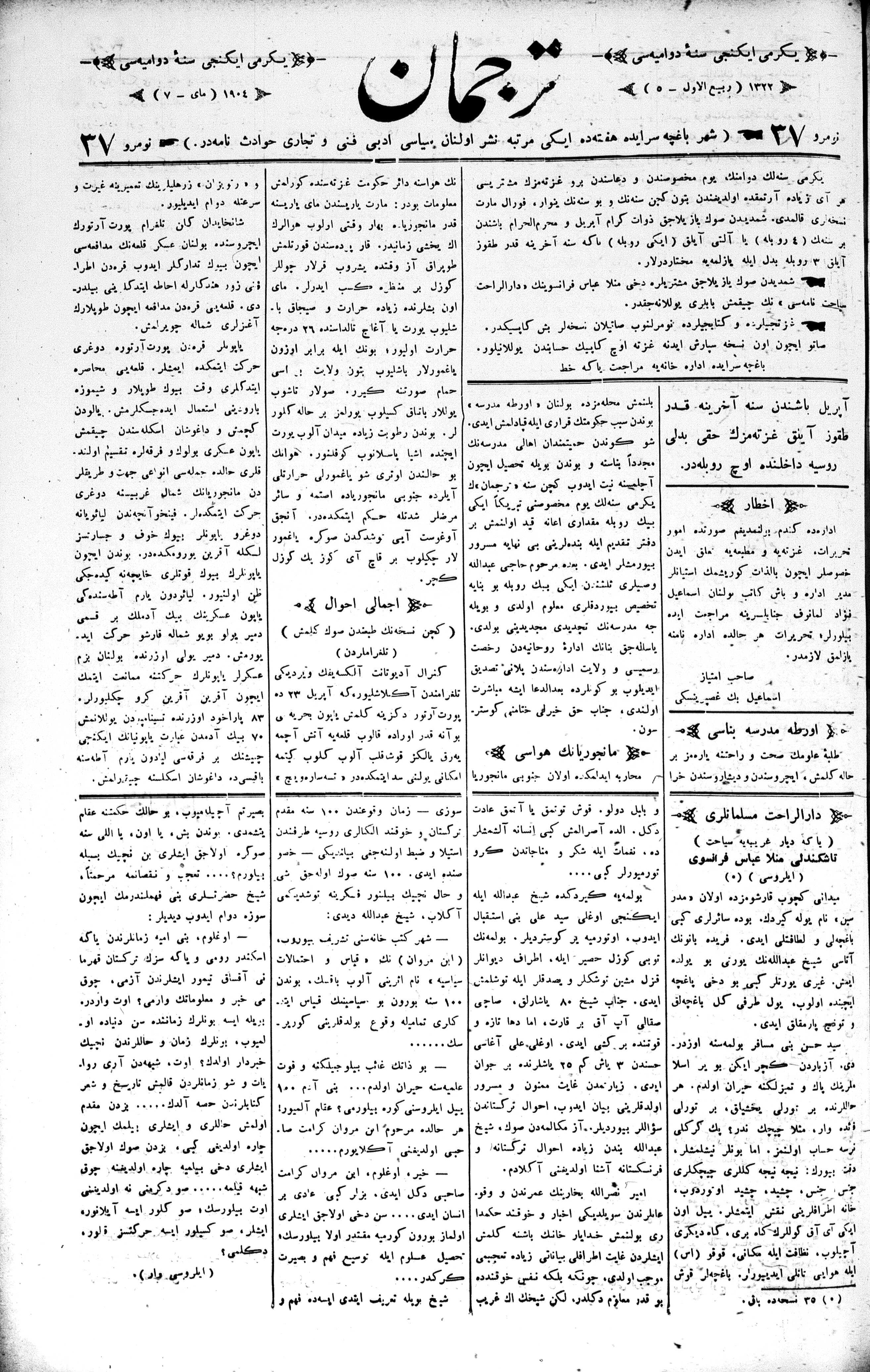 Tercüman, 07 May 1904 Year 22 No 37