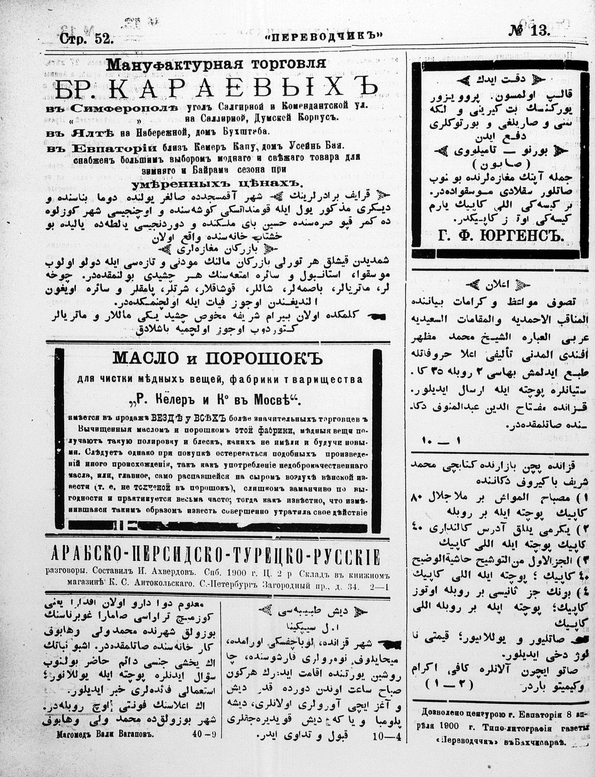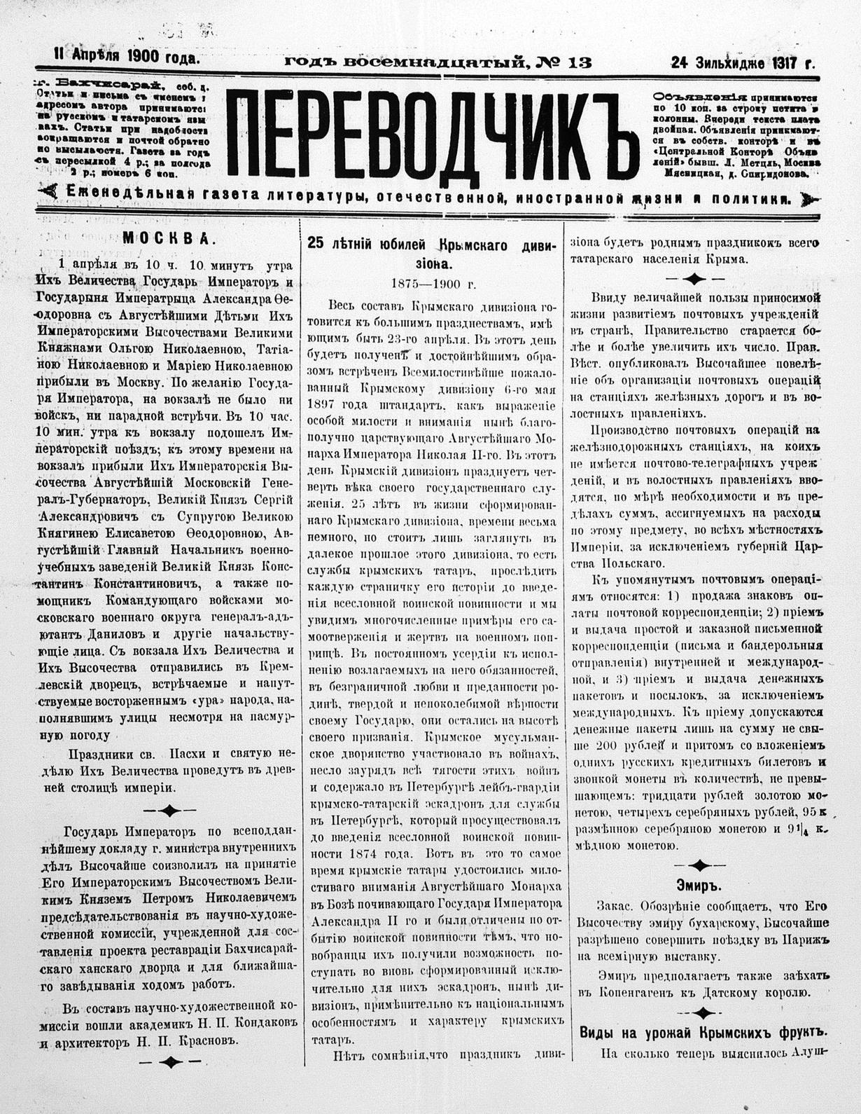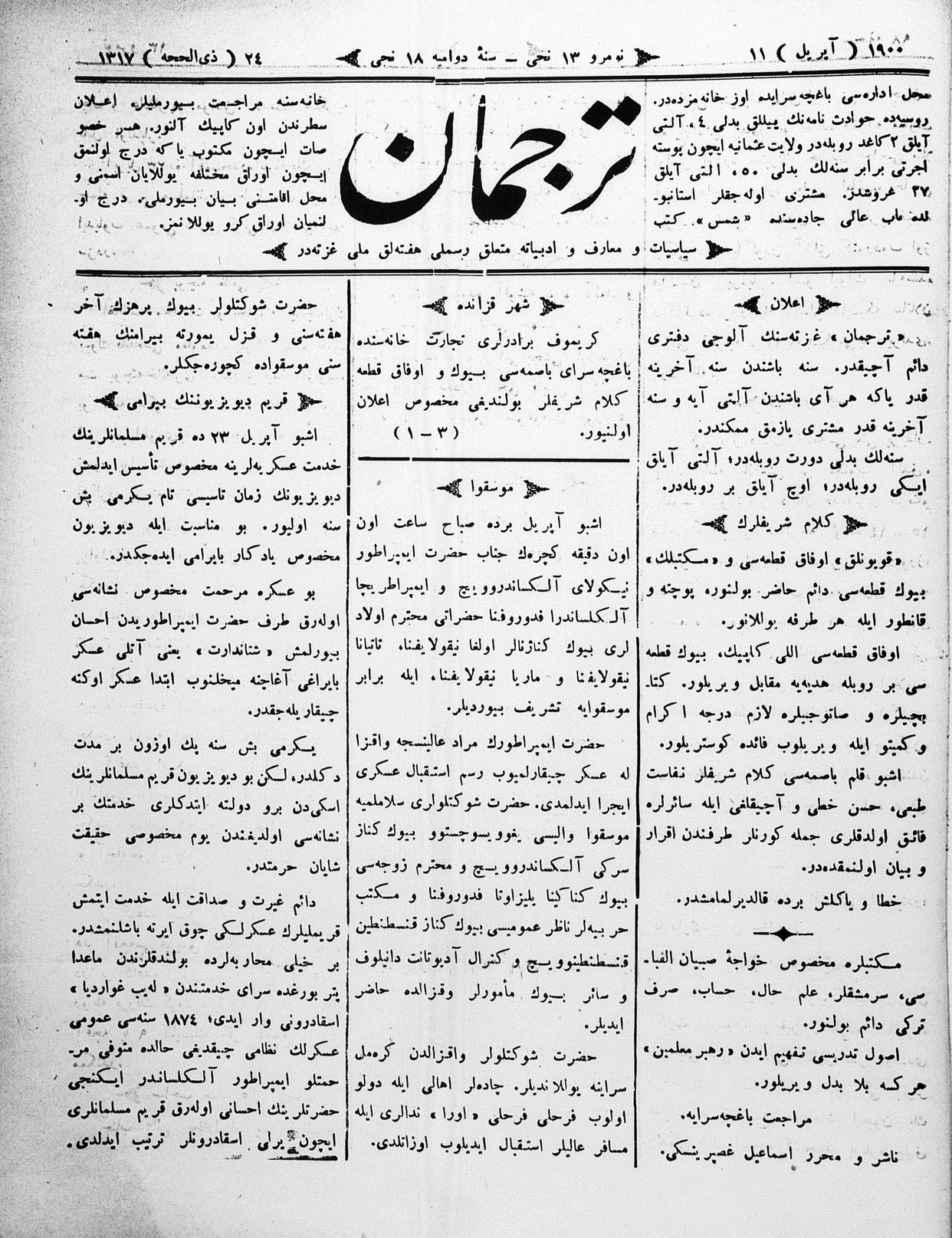 Tercüman, 11 April 1900 Year 18 No 13