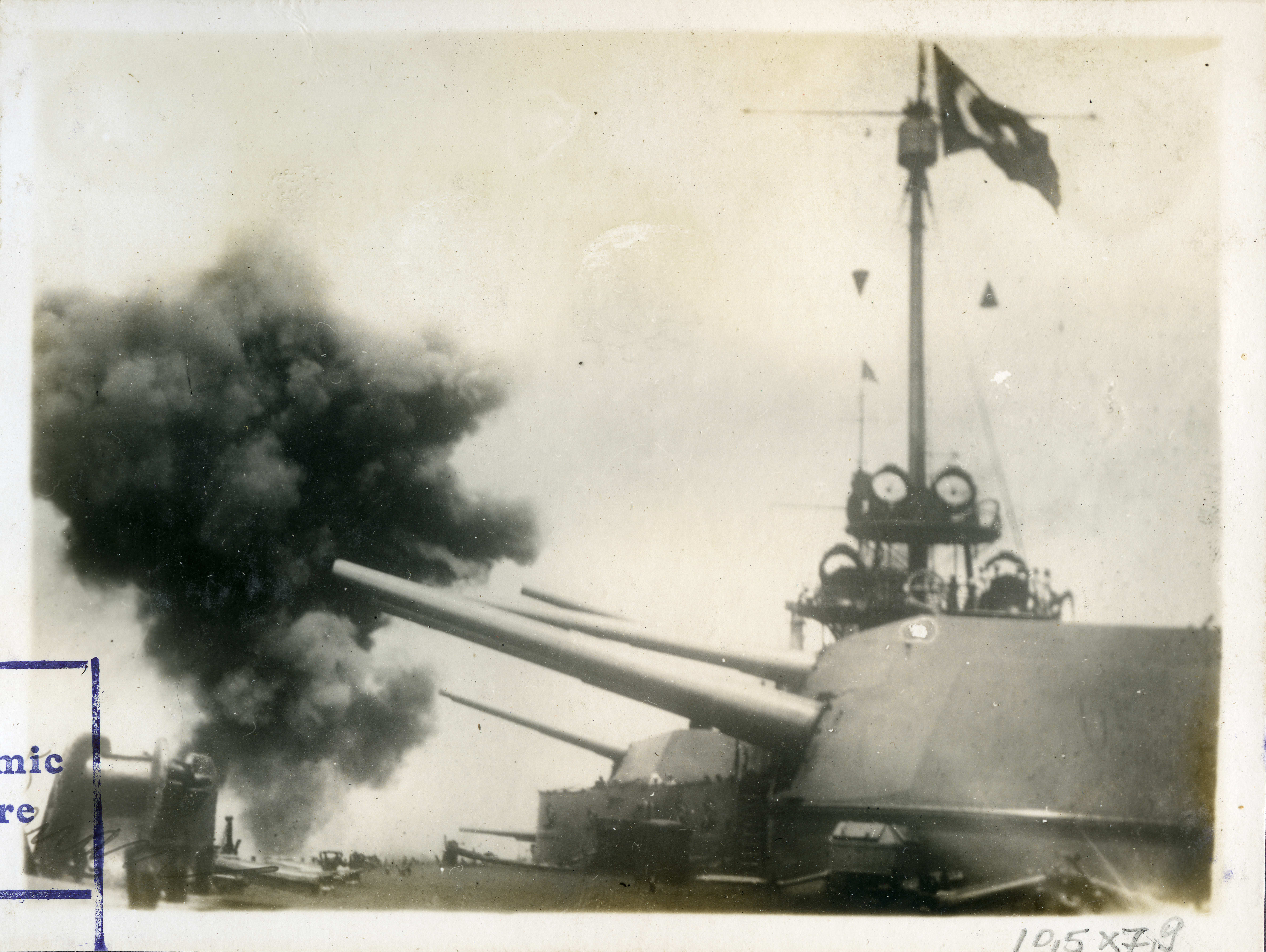Deniz manevrasında Türk donanma gemilerinden birinde top atılırken