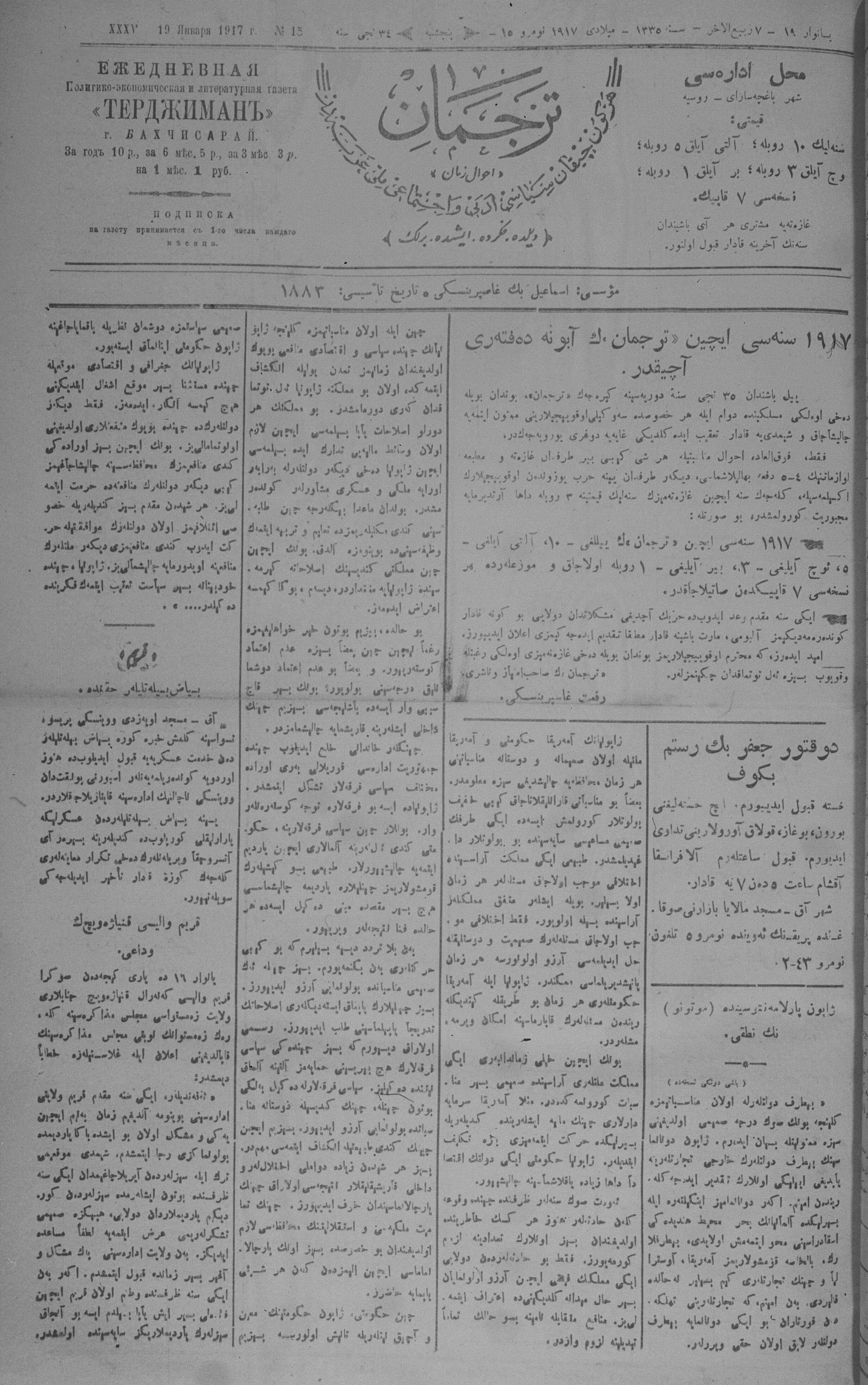 Tercüman, 19 January 1917 Year 35 No 15