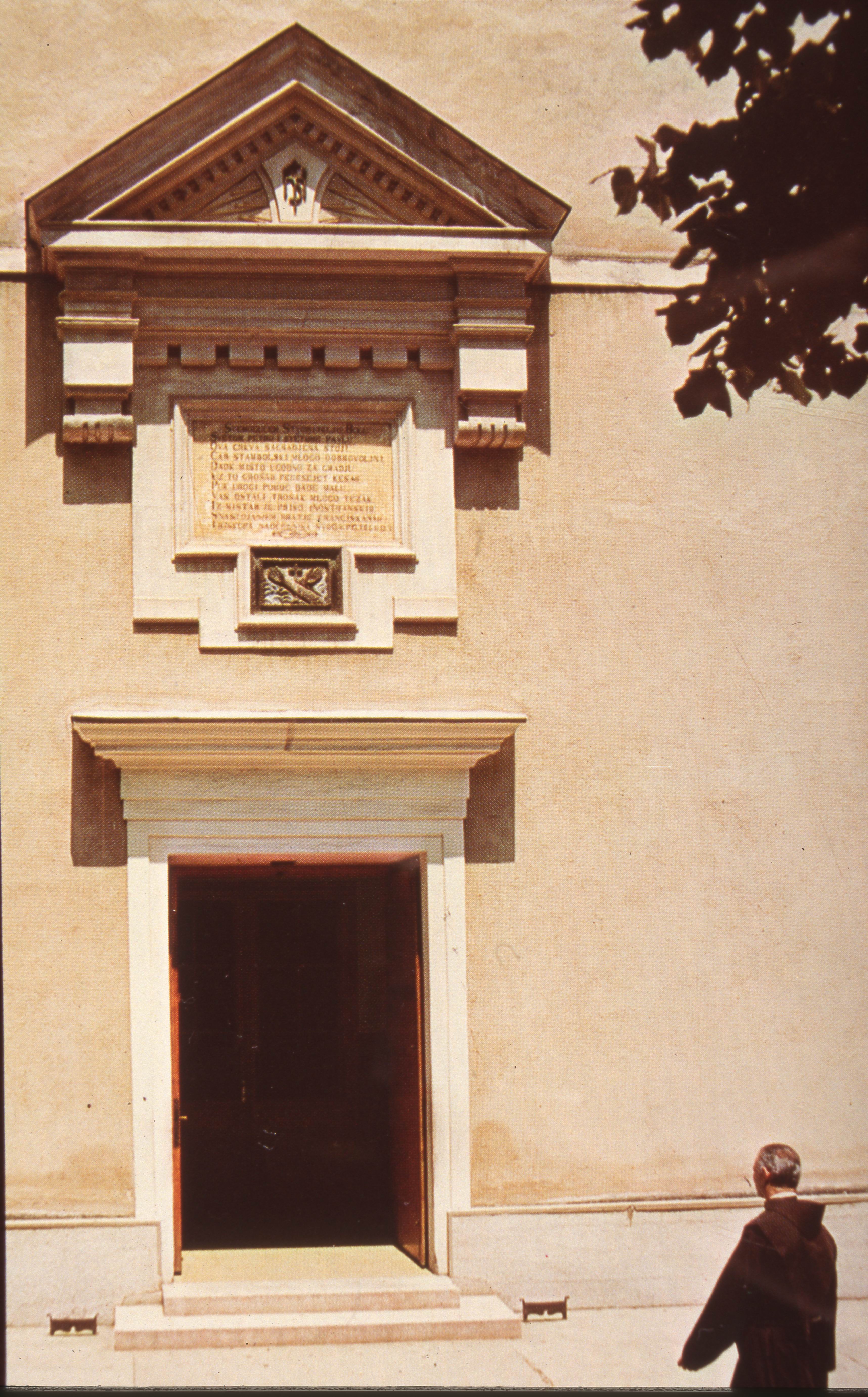 Inscription from 1866 at the main entrance of the St. Peter and Paul Catholic Church in Mostar